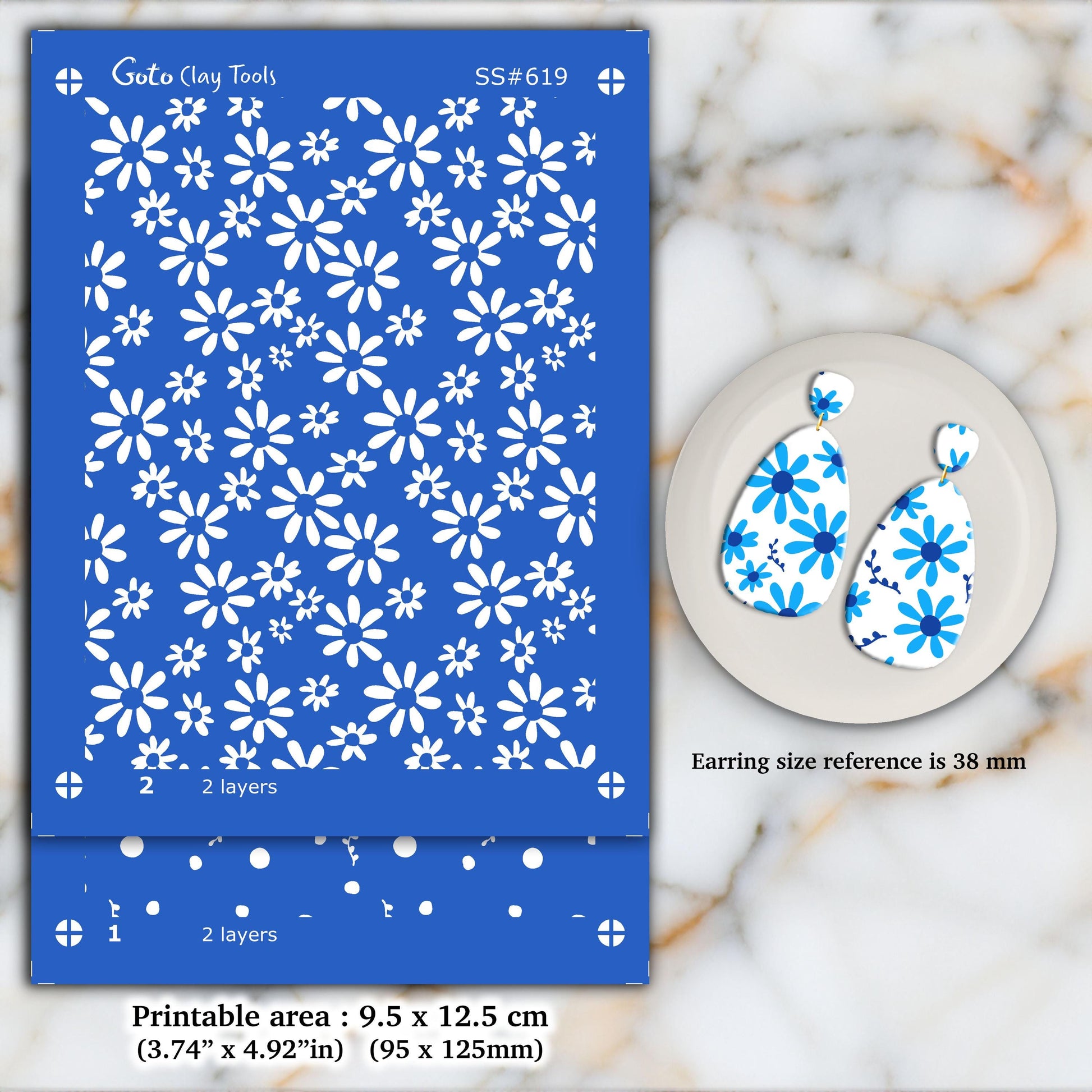 2 colors Daisy Silkscreen for Polymer Clay Earring making, Clay Stencils, Clay Earring Silkscreen, Polymer Clay Supplies SS#619