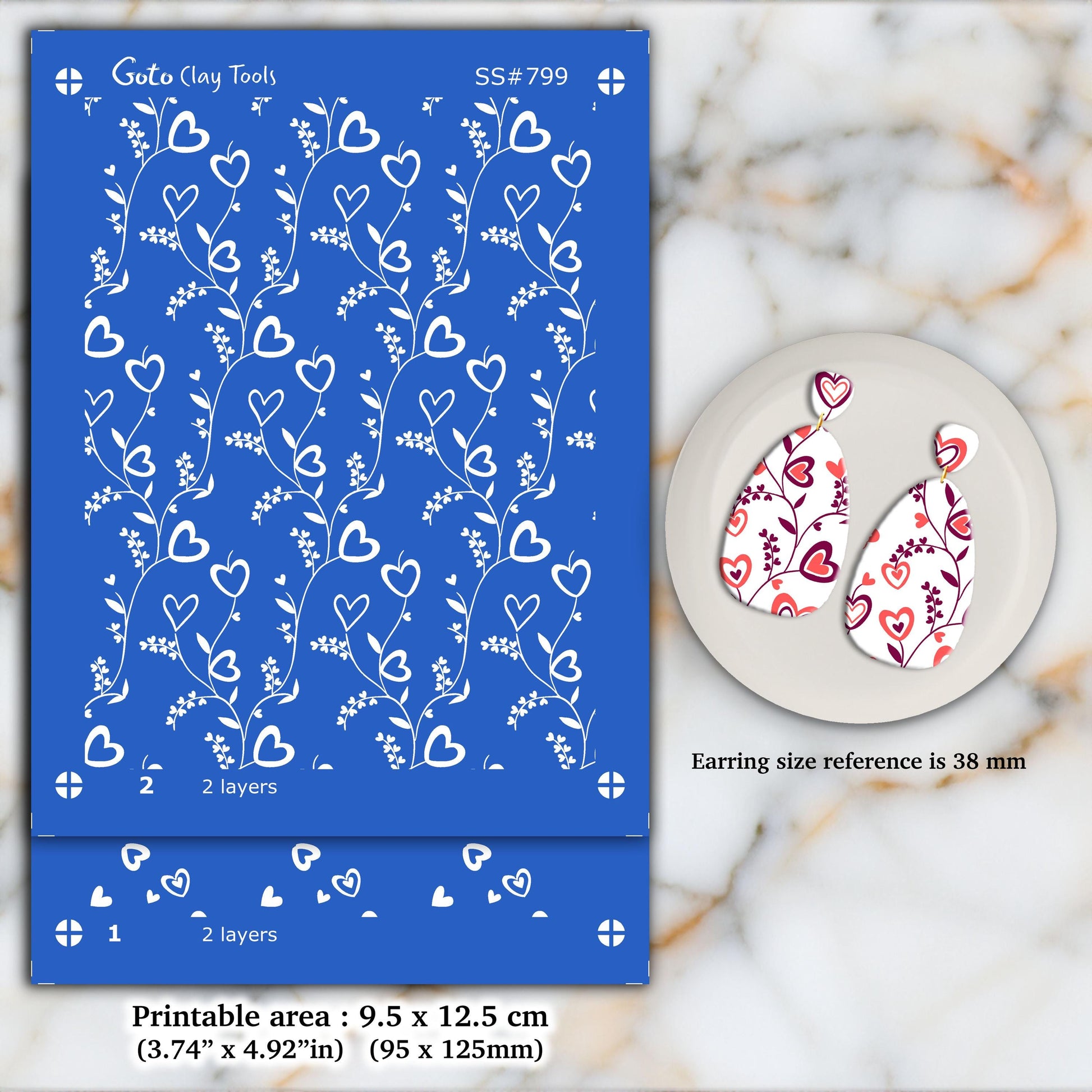 2 Layers Heart vine Silkscreen for Polymer Clay Earring making, Clay Stencils, Clay Earring Silkscreen, Polymer Clay Supplies SS#799