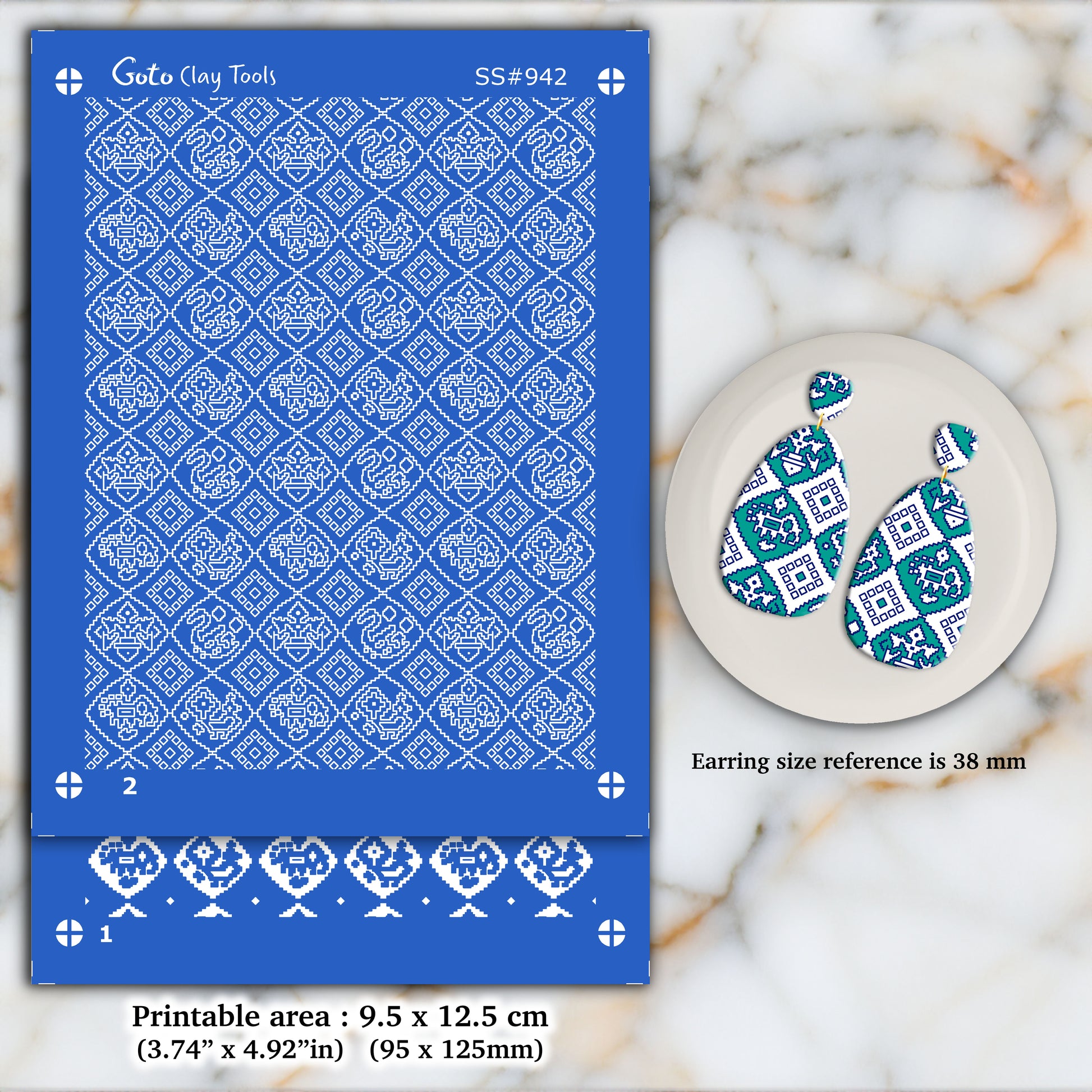 2 Layers Indian Silkscreen for Polymer Clay Earring making, Clay Stencils, Clay Earring Silkscreen, Polymer Clay Supplies SS#942