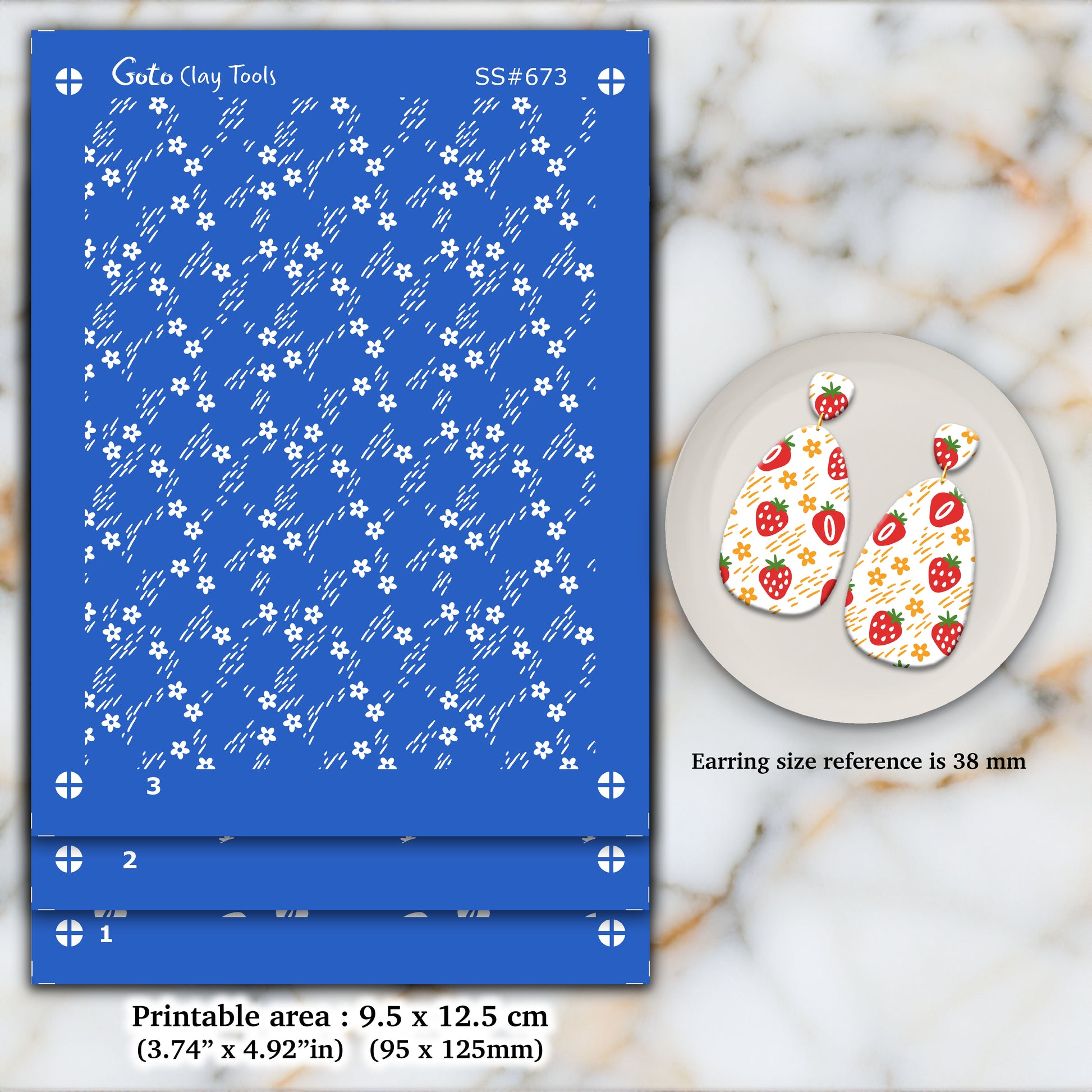 3 Layers Strawberry Silkscreen for Polymer Clay Earring making, Clay Stencils, Clay Earring Silkscreen, Polymer Clay Supplies SS#673