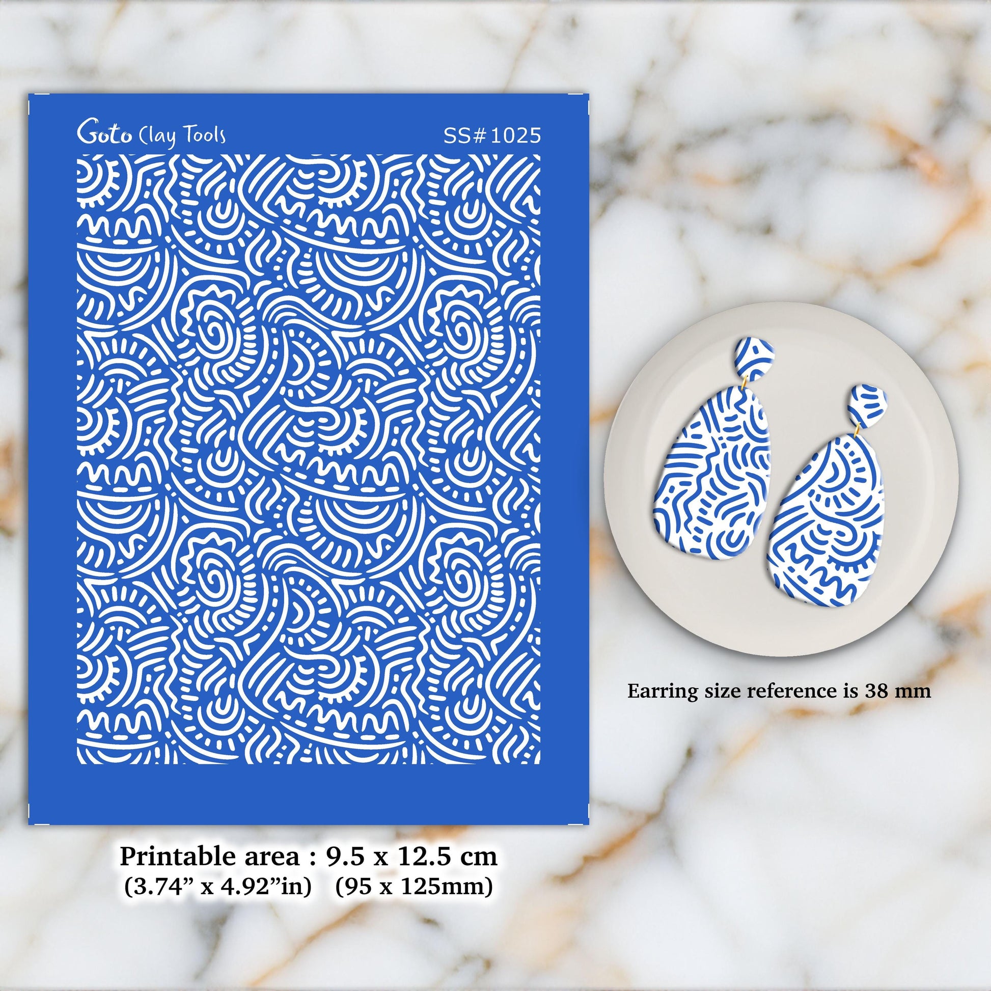 Abstract ethnic Silkscreen for Polymer Clay Earring making, Clay Stencils, Clay Earring Silkscreen, Polymer Clay Supplies SS#1025