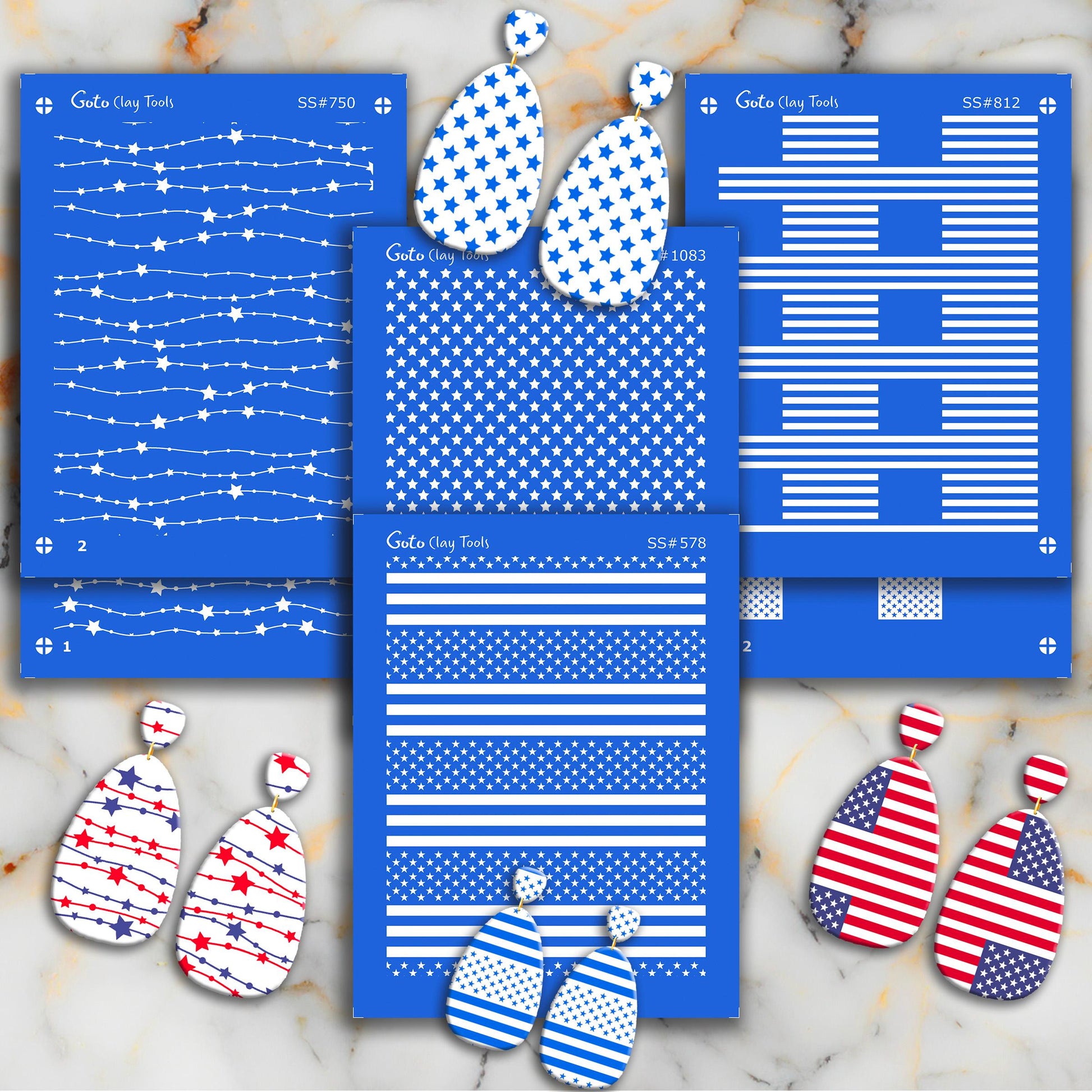 American flag Silkscreen for Polymer Clay Earring making, Clay Stencils, Clay Earring Silkscreen, Polymer Clay Supplies SS#578