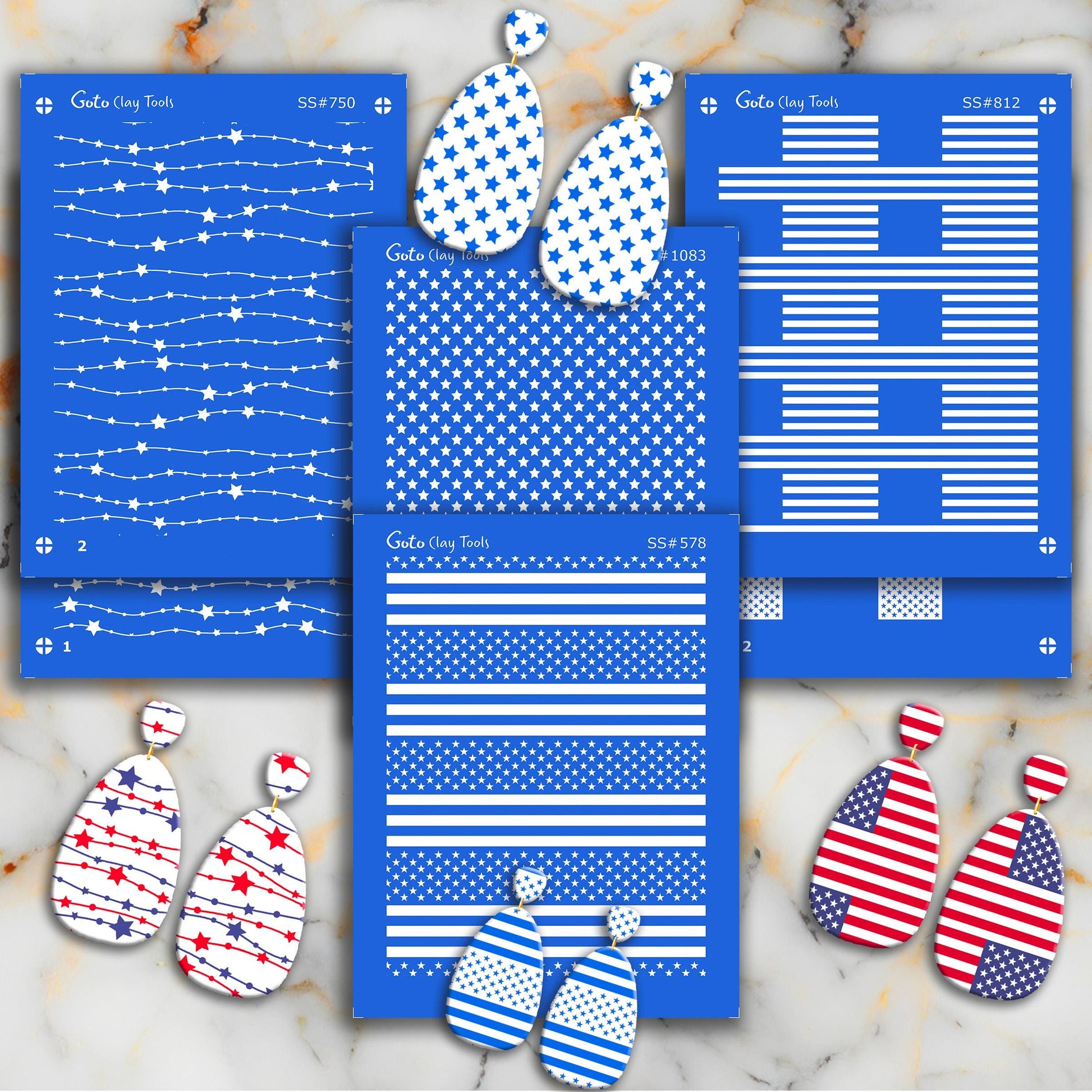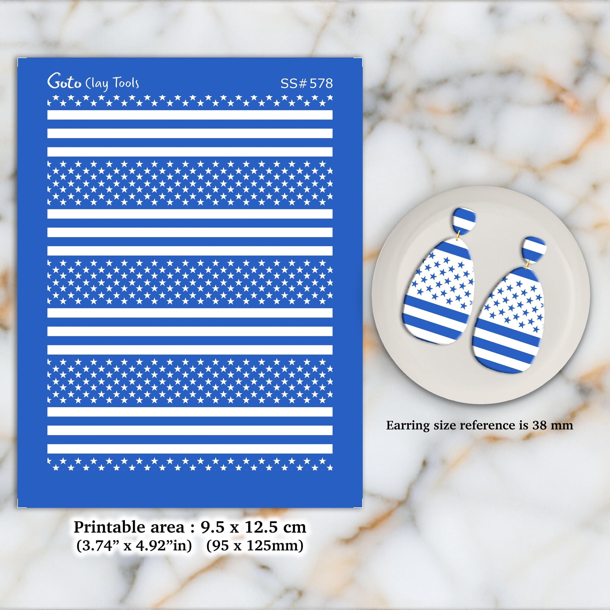 American Flag Silkscreen for Polymer Clay Earrings: 3.74" x 4.92". SS#578