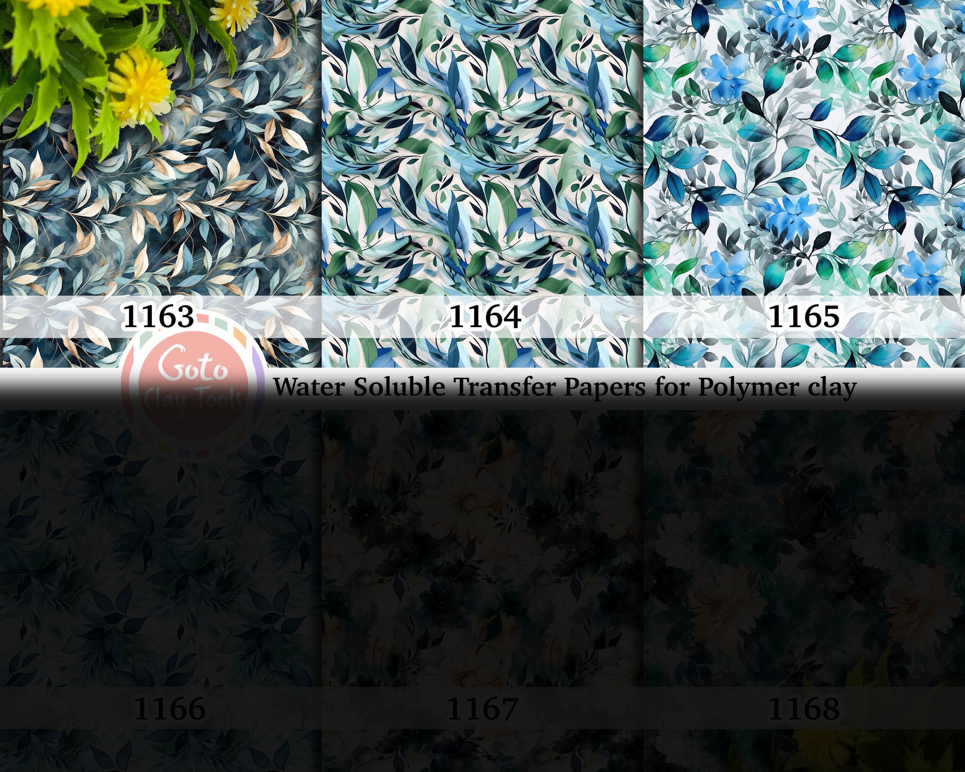 Abstract Aqua leaves and floral pattern Transfer paper for polymer clay, water soluble transfer paper, polymer clay image transfers, magic transfer paper
