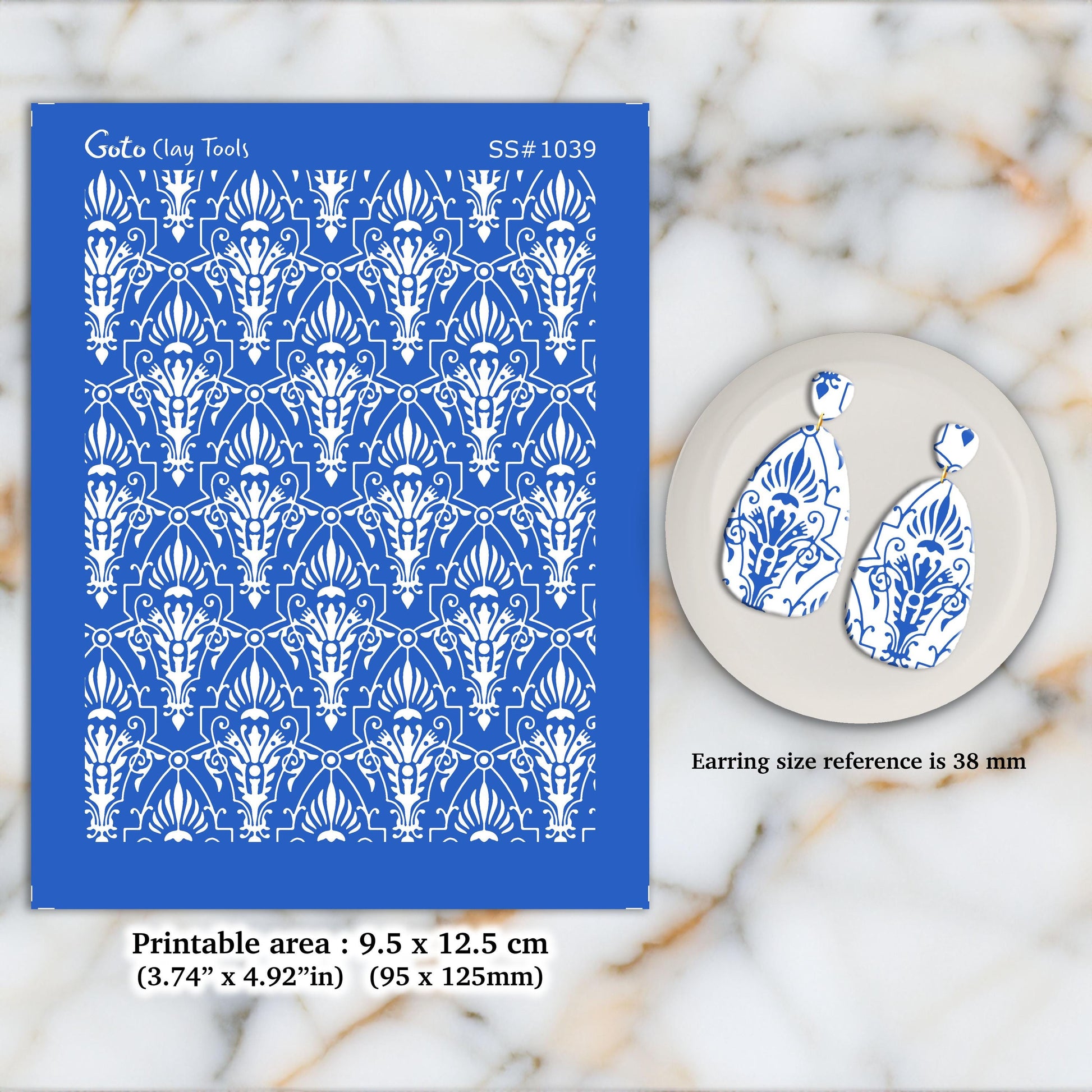 Art deco Damask Silkscreen for Polymer Clay Earring making, Clay Stencils, Clay Earring Silkscreen, Polymer Clay Supplies