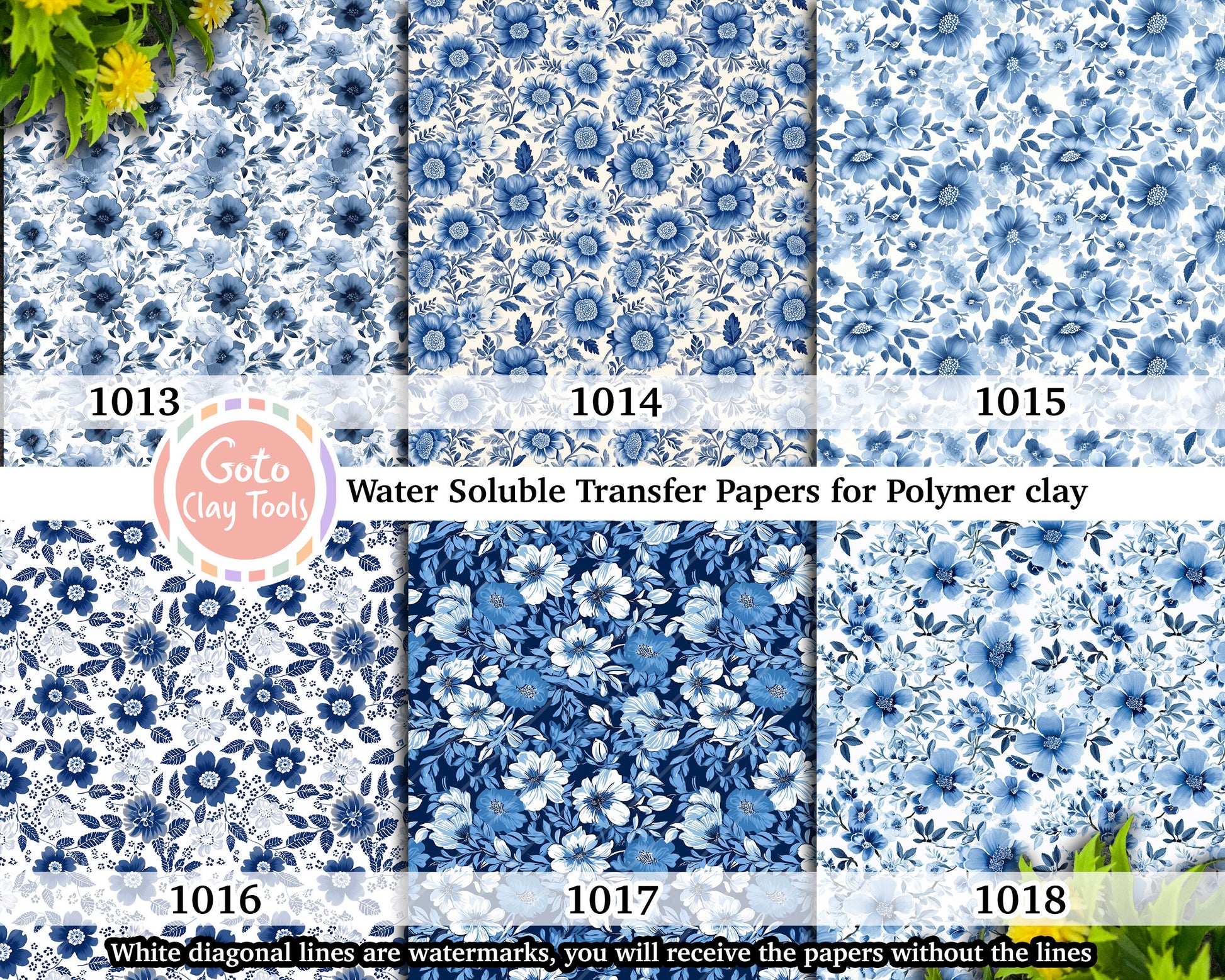 Blue Chinoiserie flower pattern Transfer paper for polymer clay, water soluble transfer paper, polymer clay image transfers, magic transfer paper
