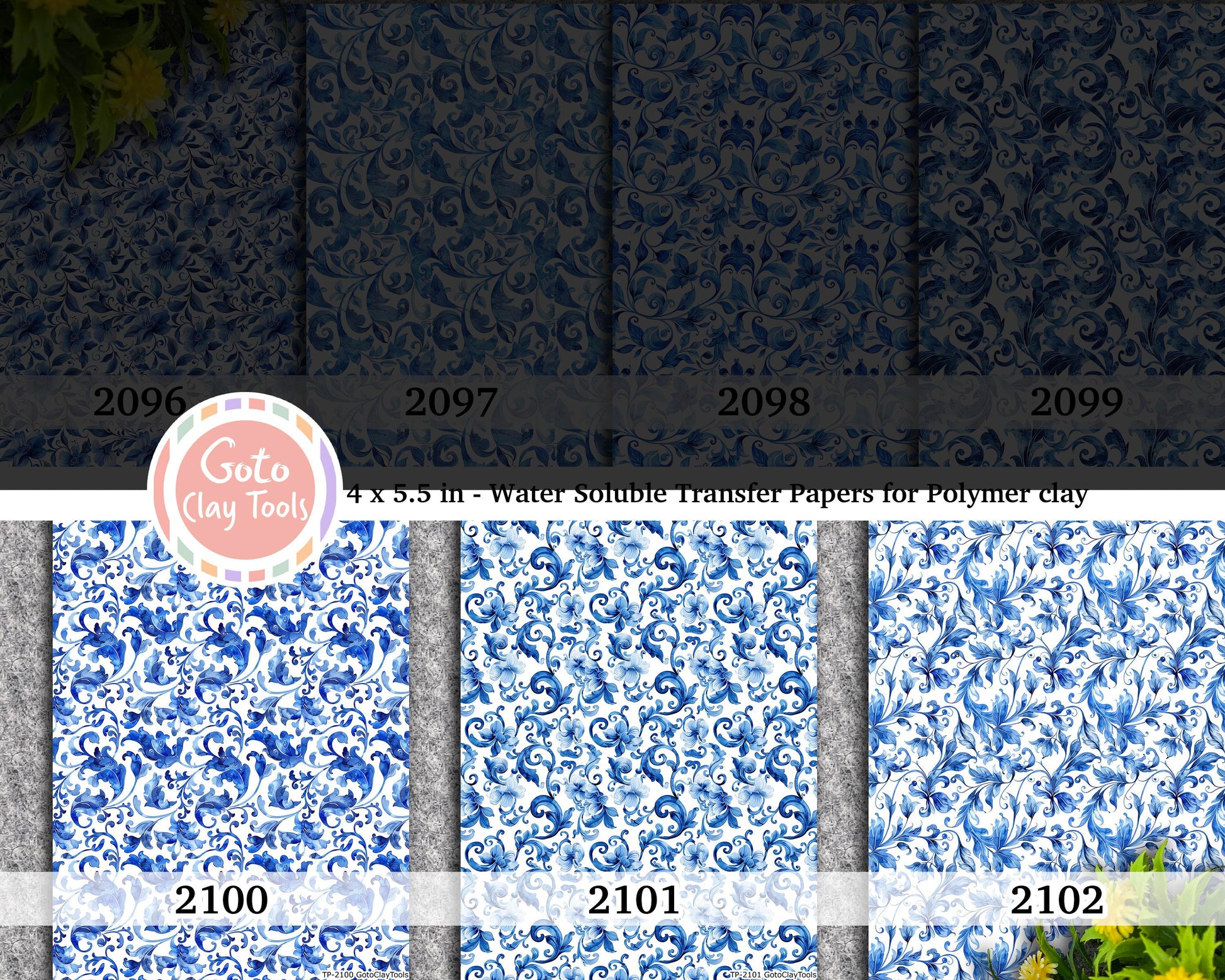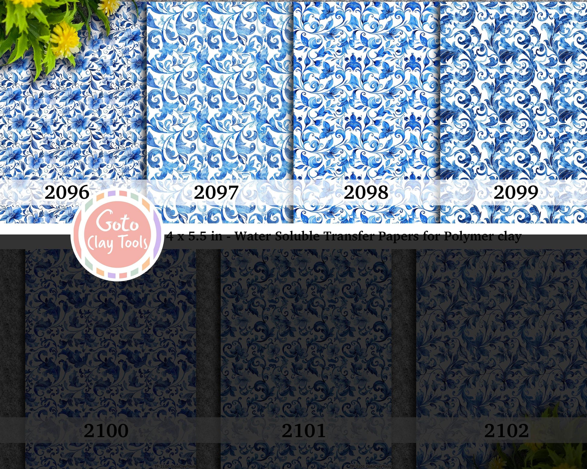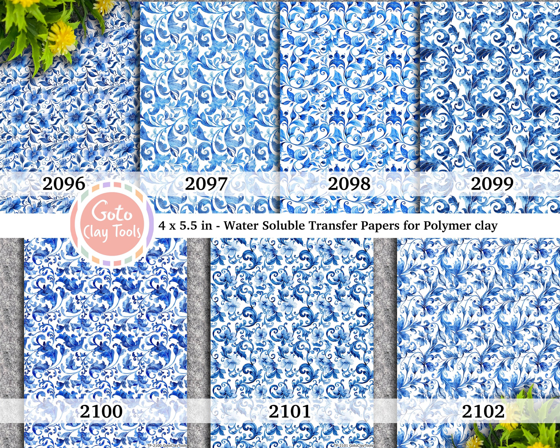 Blue floral pattern Transfer paper for polymer clay, water soluble transfer paper, polymer clay image transfers, magic transfer paper