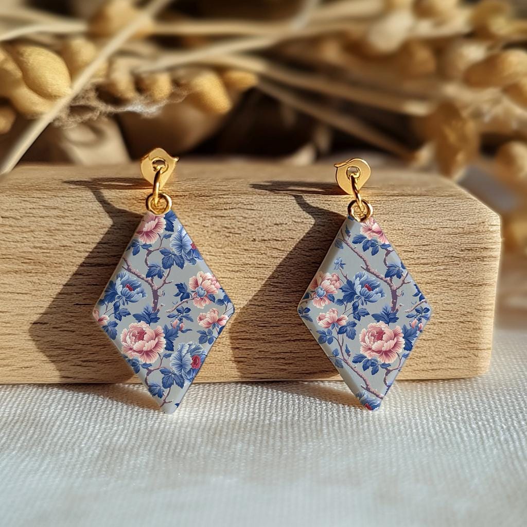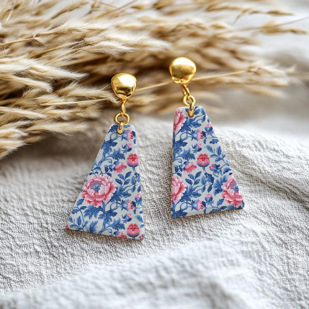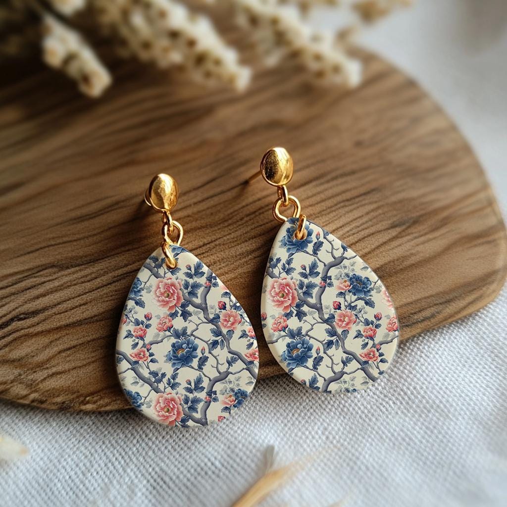 Blue and peach rose floral pattern Transfer paper for polymer clay, water soluble transfer paper, polymer clay image transfers, magic transfer paper