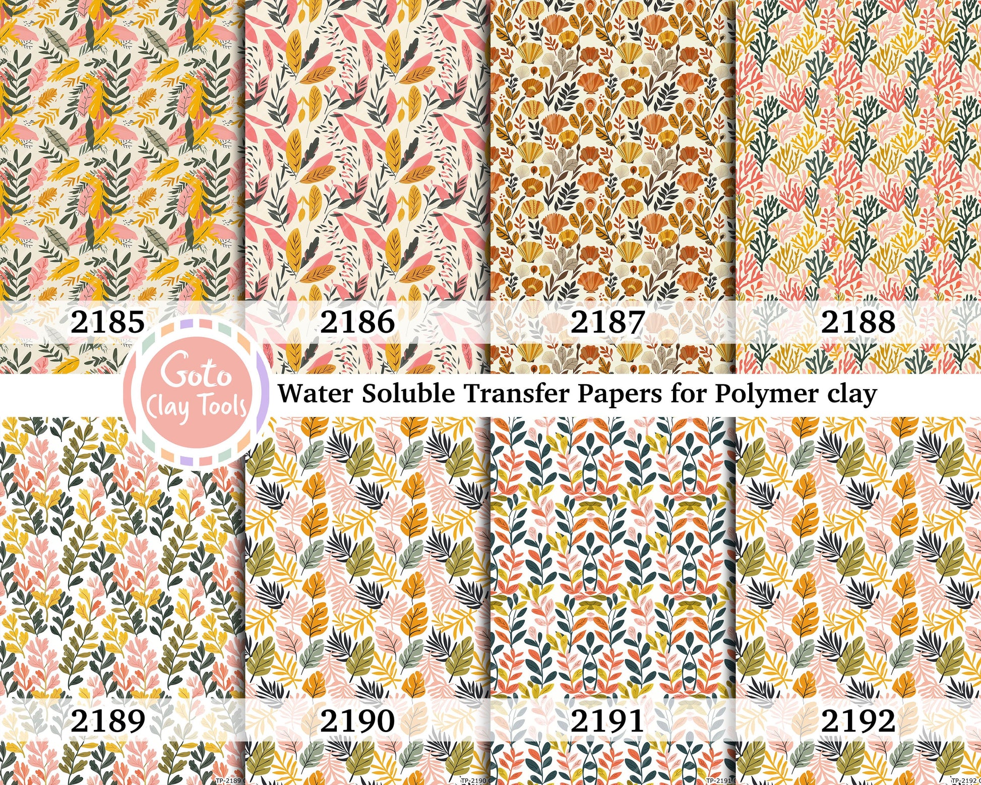Bohemian Leaves and coral grass Transfer paper for polymer clay, water soluble transfer paper, polymer clay image transfers, magic transfer paper