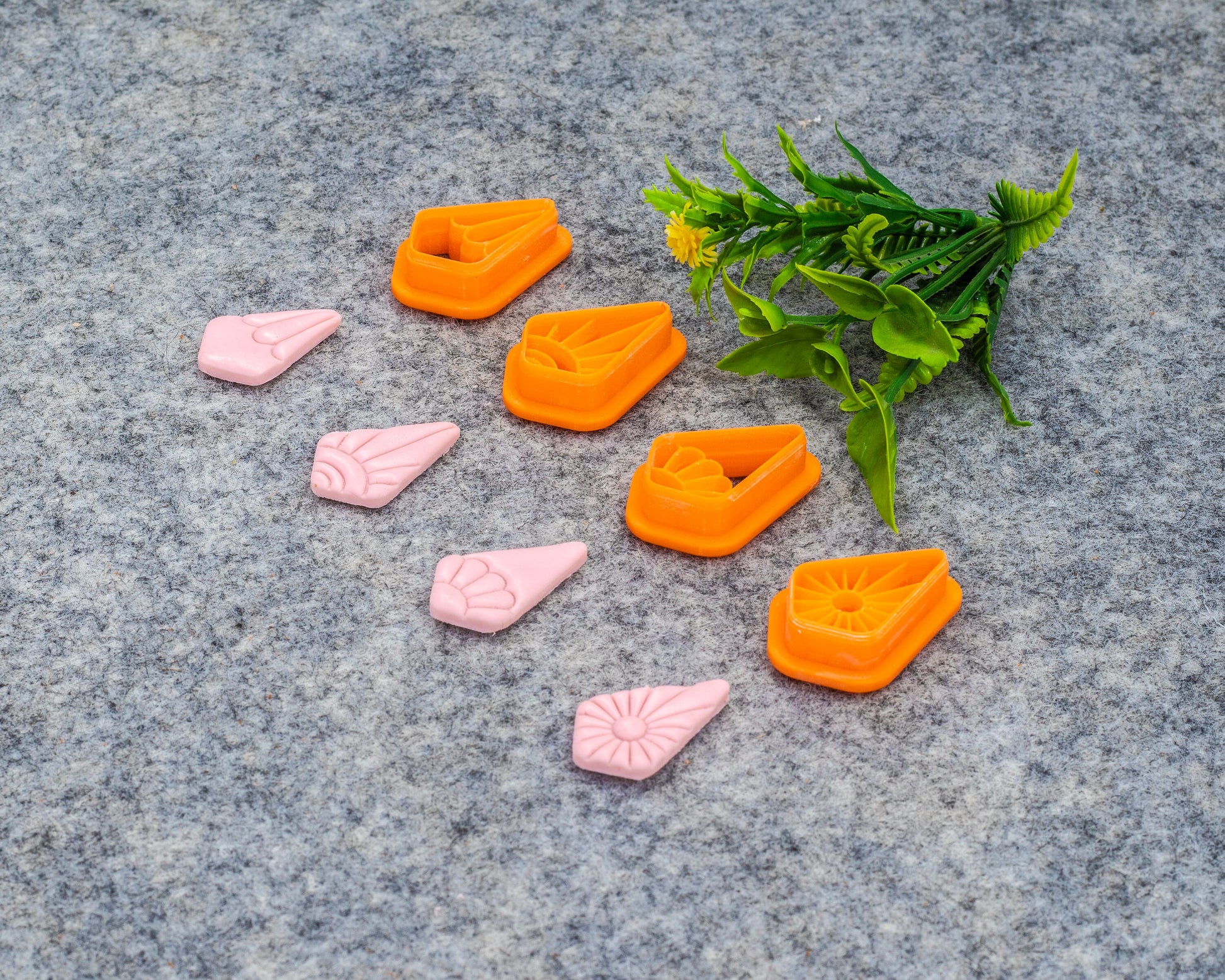 Bohemian style cutter for polymer clay, Diamond shape polymer clay cutter with embossed rays and flower #613