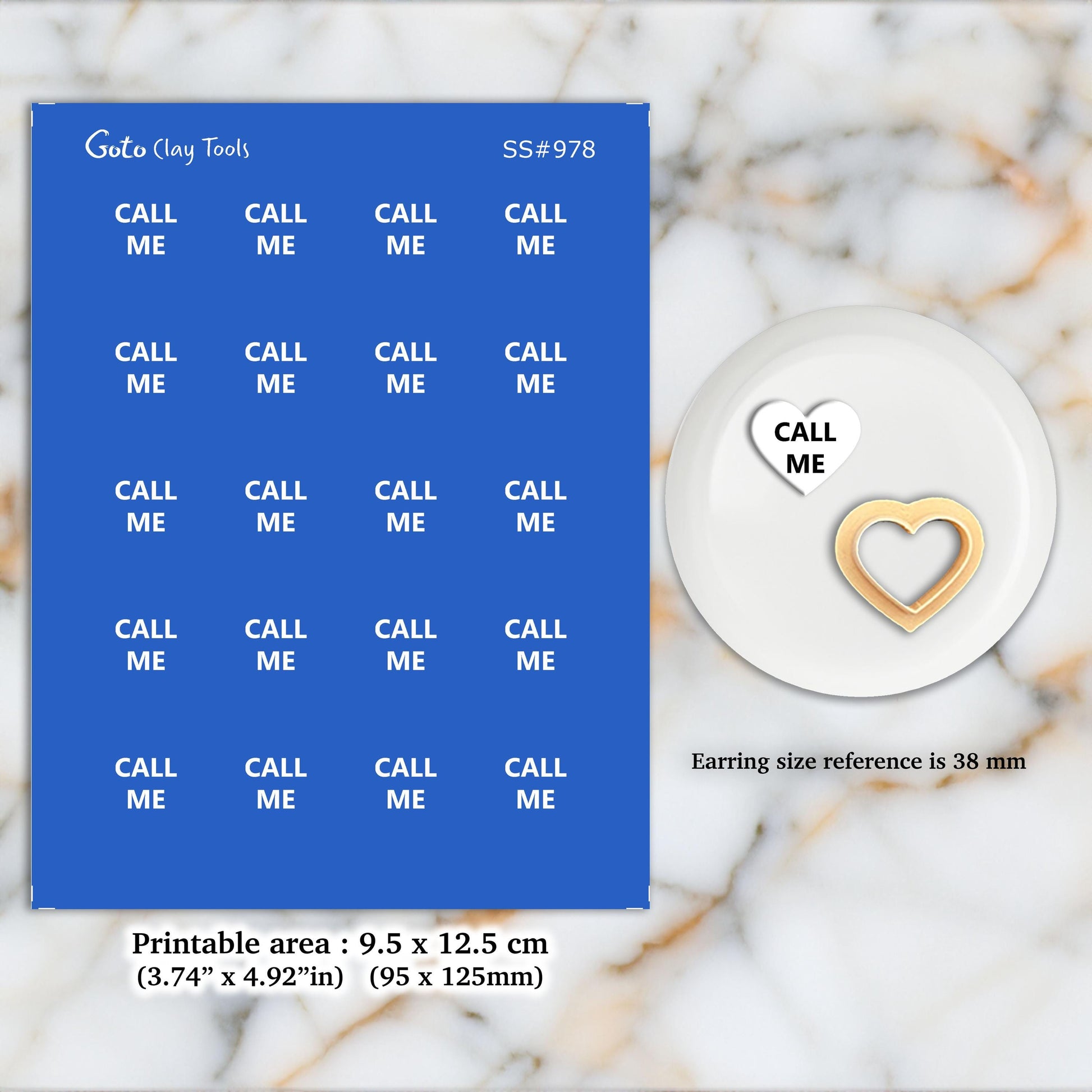 CALL ME Silkscreen with heart cutter for Polymer Clay Earring making, Clay Stencils, Clay Earring Silkscreen, Polymer Clay Supplies SS#978