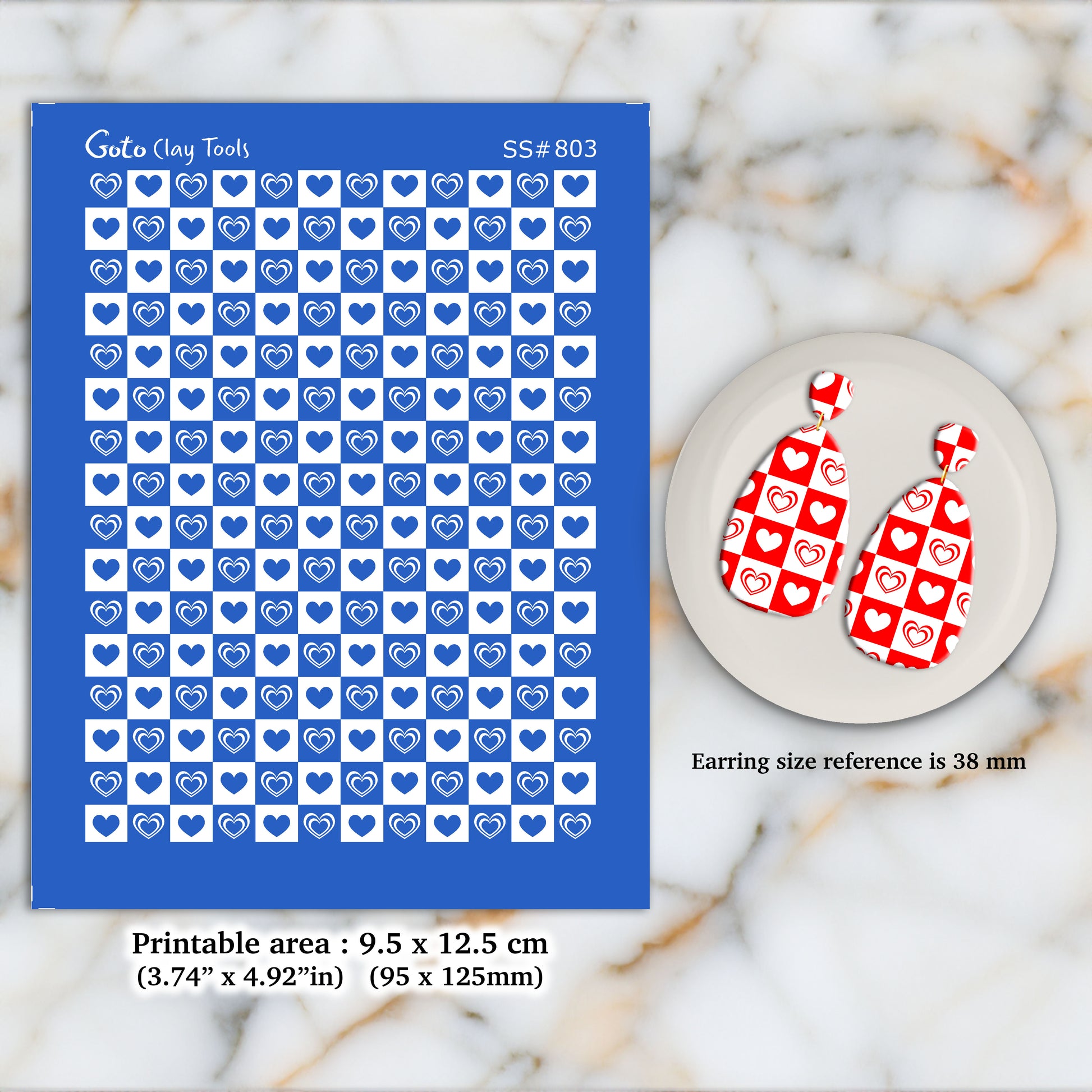 Checkered heart Silkscreen for Polymer Clay Earring making, Clay Stencils, Clay Earring Silkscreen, Polymer Clay Supplies SS#803