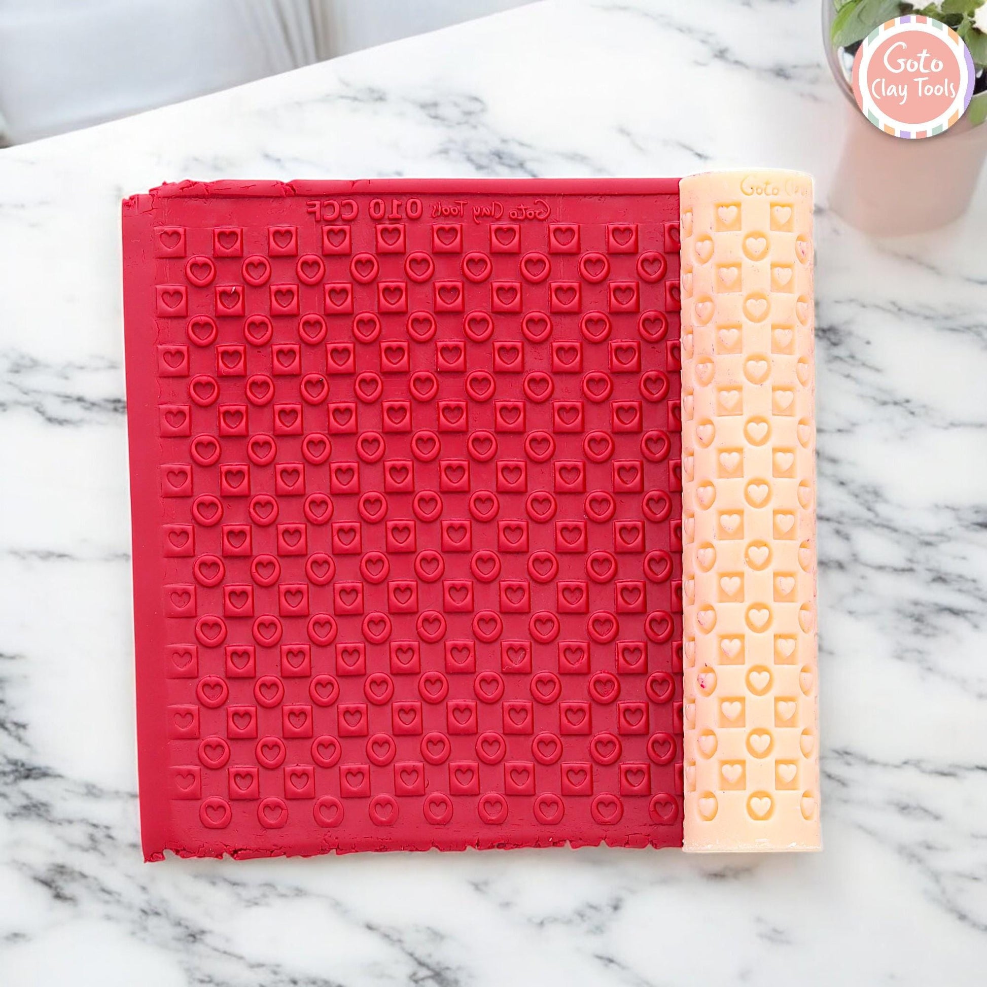 Checkered Heart Texture Roller: Polymer Clay Tool #CCF10