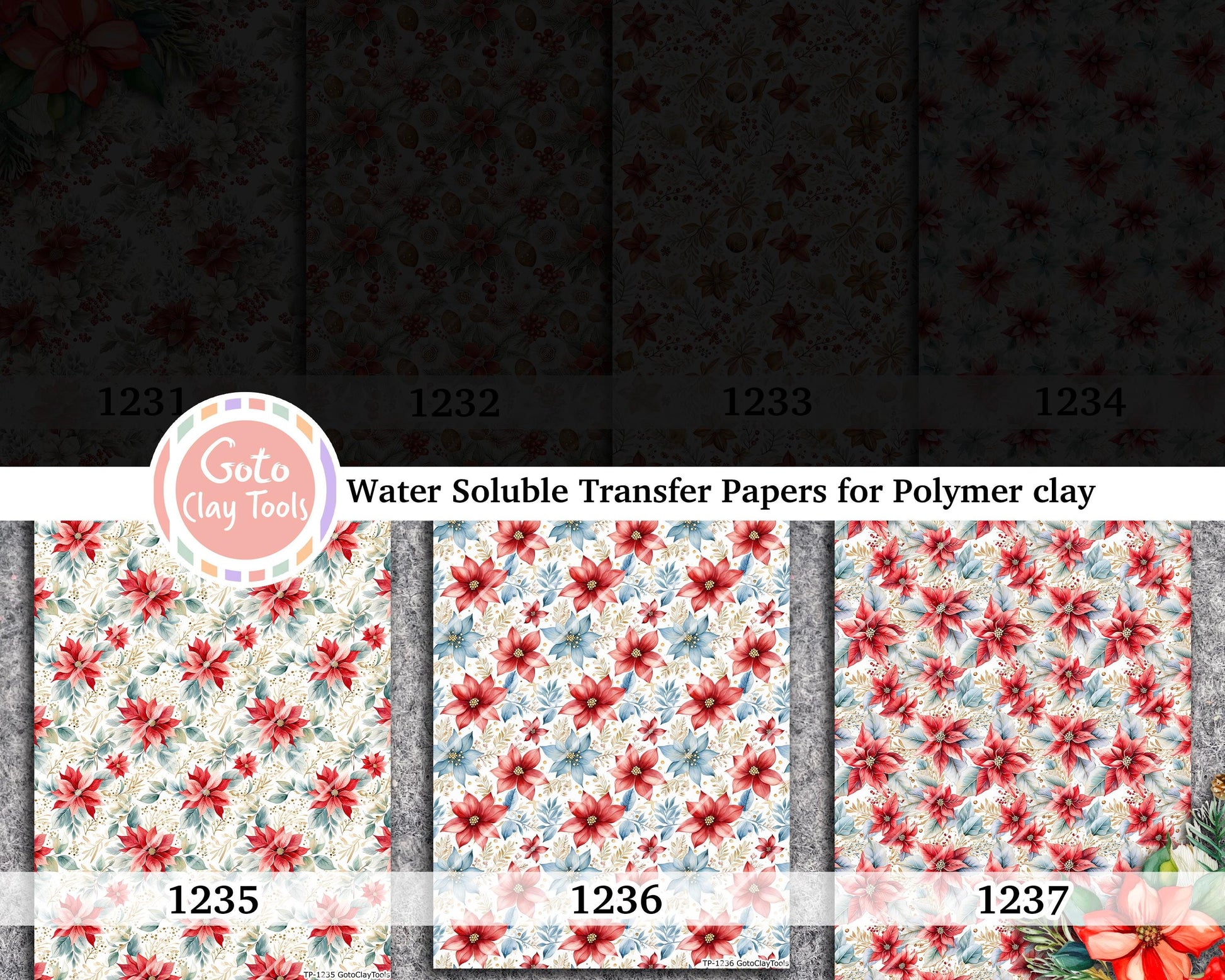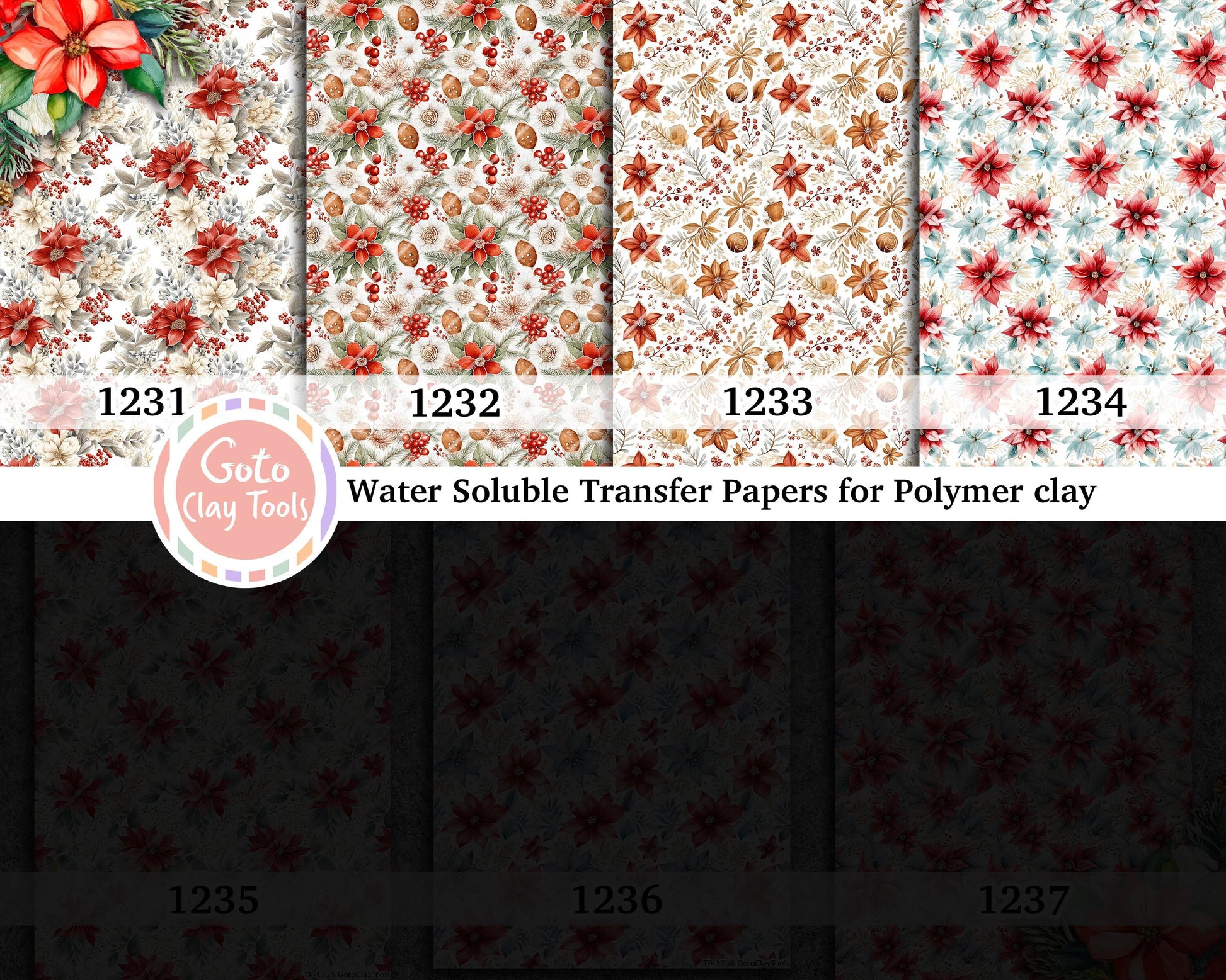 Christmas floral Water soluble Transfer paper for polymer clay, Colorful flower patterns, polymer clay image transfers, magic transfer paper