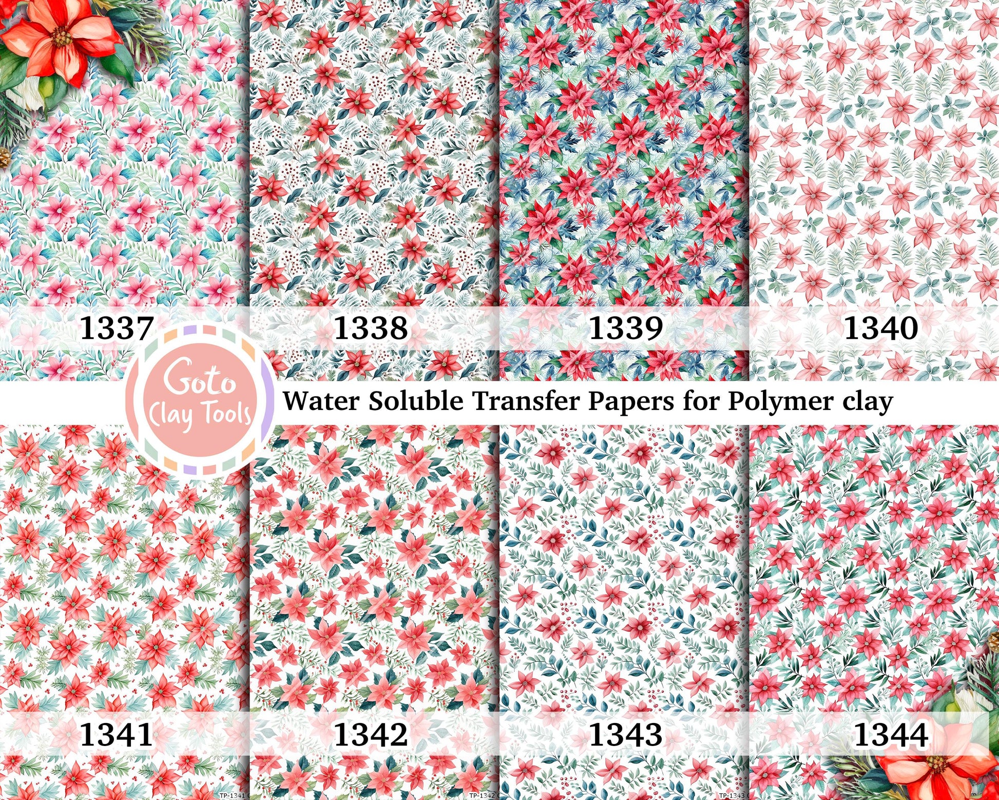 Christmas poinsettia pattern Transfer paper for polymer clay, water soluble transfer paper, polymer clay image transfers, magic transfer paper