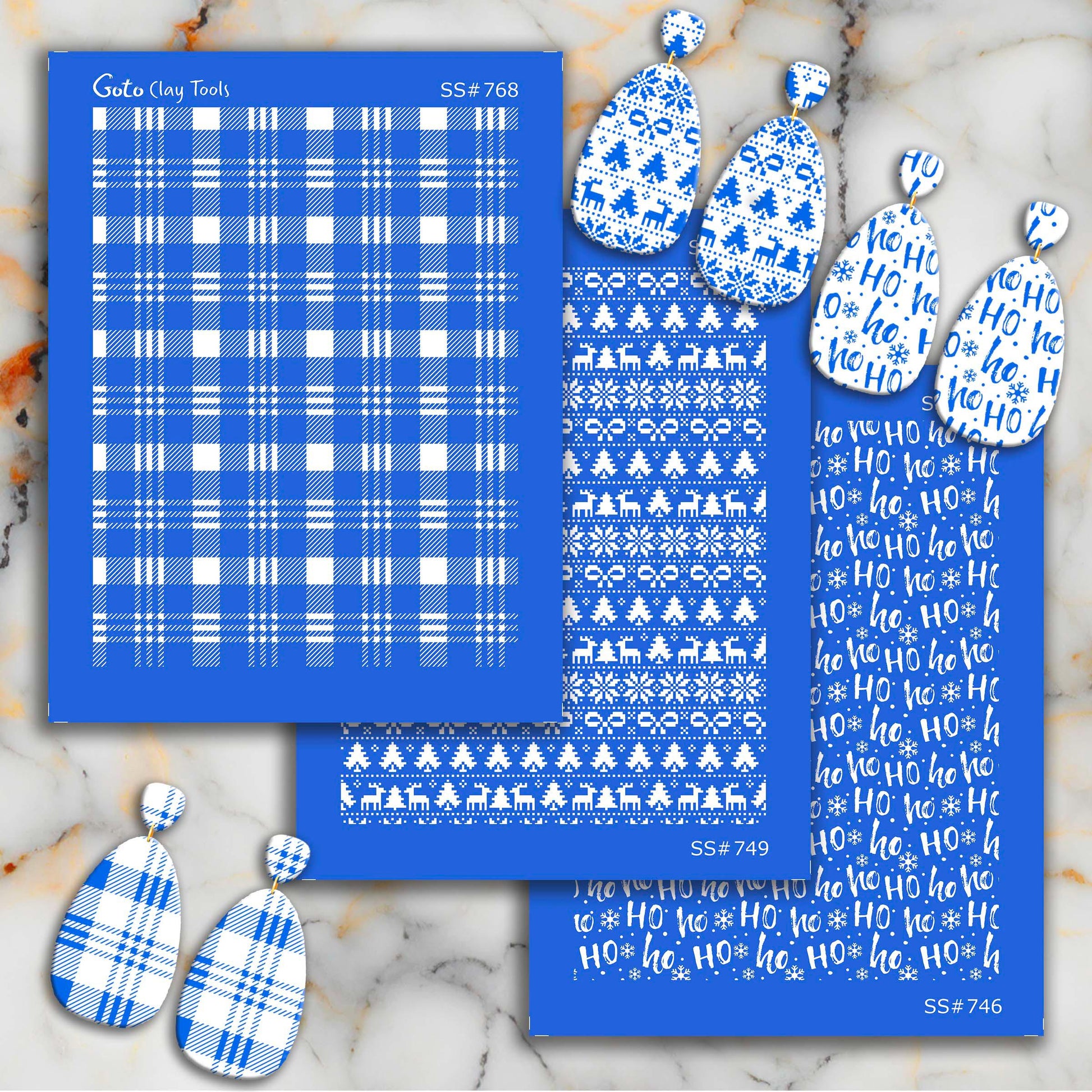 Christmas pattern Silkscreen for Polymer Clay Earring making, Clay Stencils, Clay Earring Silkscreen, Polymer Clay Supplies