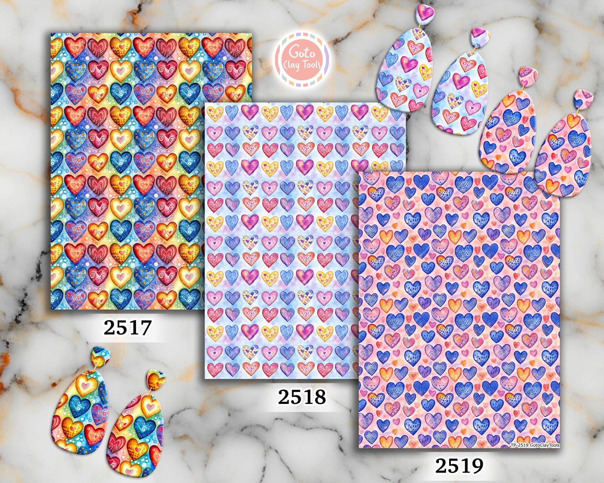 Colorful Heart Polymer Clay Transfer Sheet, Clay Transfer Paper, Heart Clay transfer, polymer clay image transfers, magic transfer paper