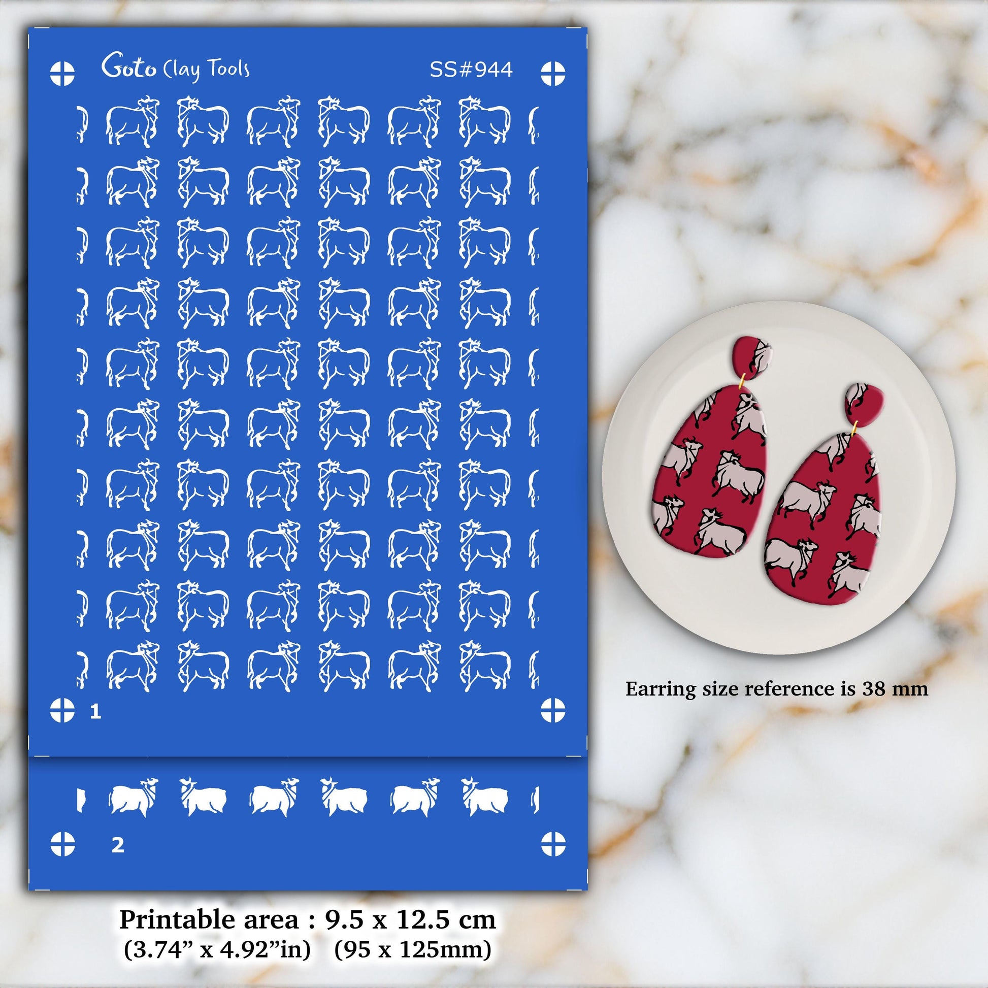 Cow Silkscreen for Polymer Clay Earrings: Indian Style Stencil (SS#944)