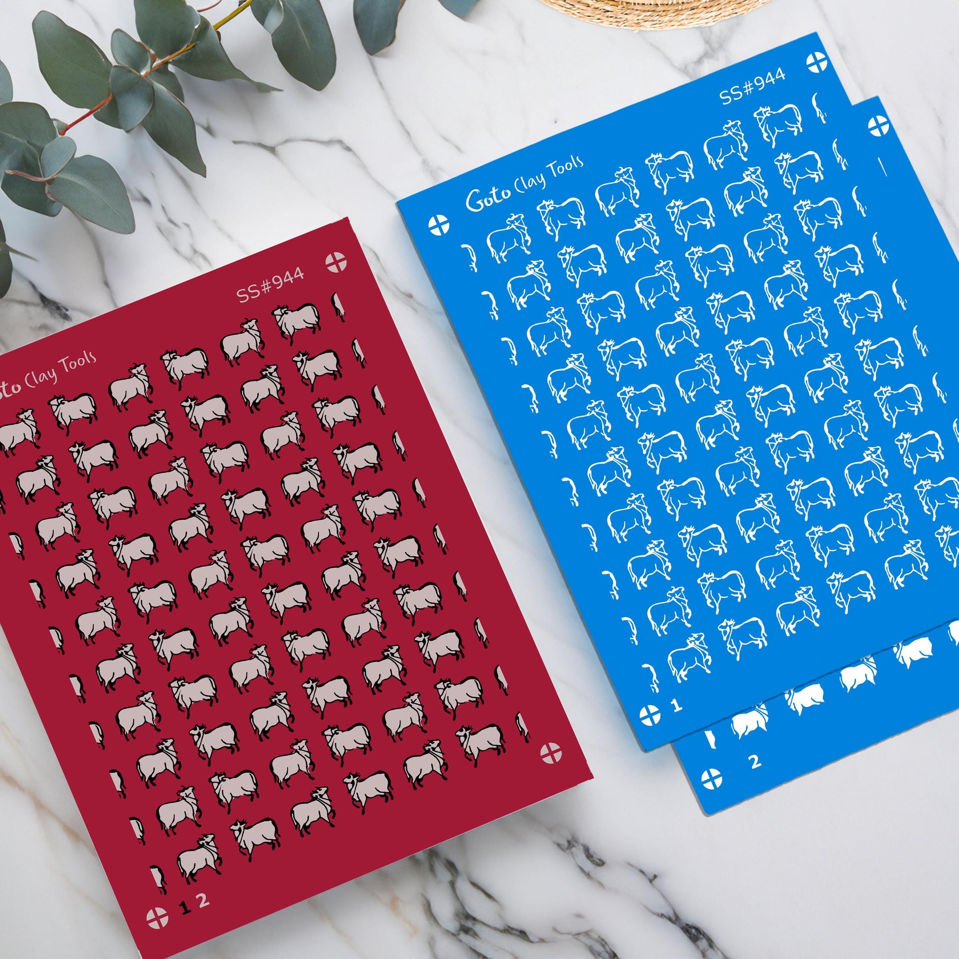 2 layers Cow Indian style elephant Silk screen with cutter for Polymer clay jewelry, silkscreen for printing on polymer clay for pot or clay artists.