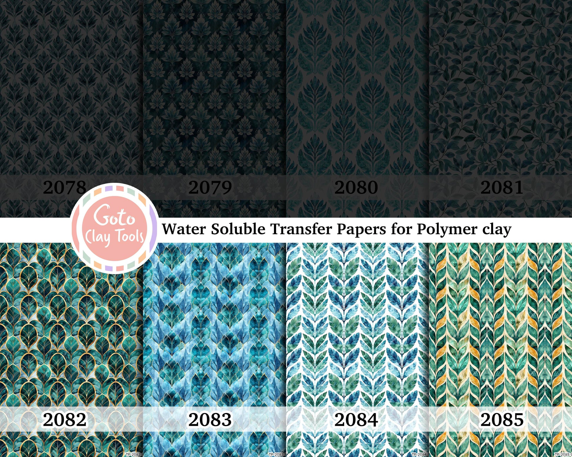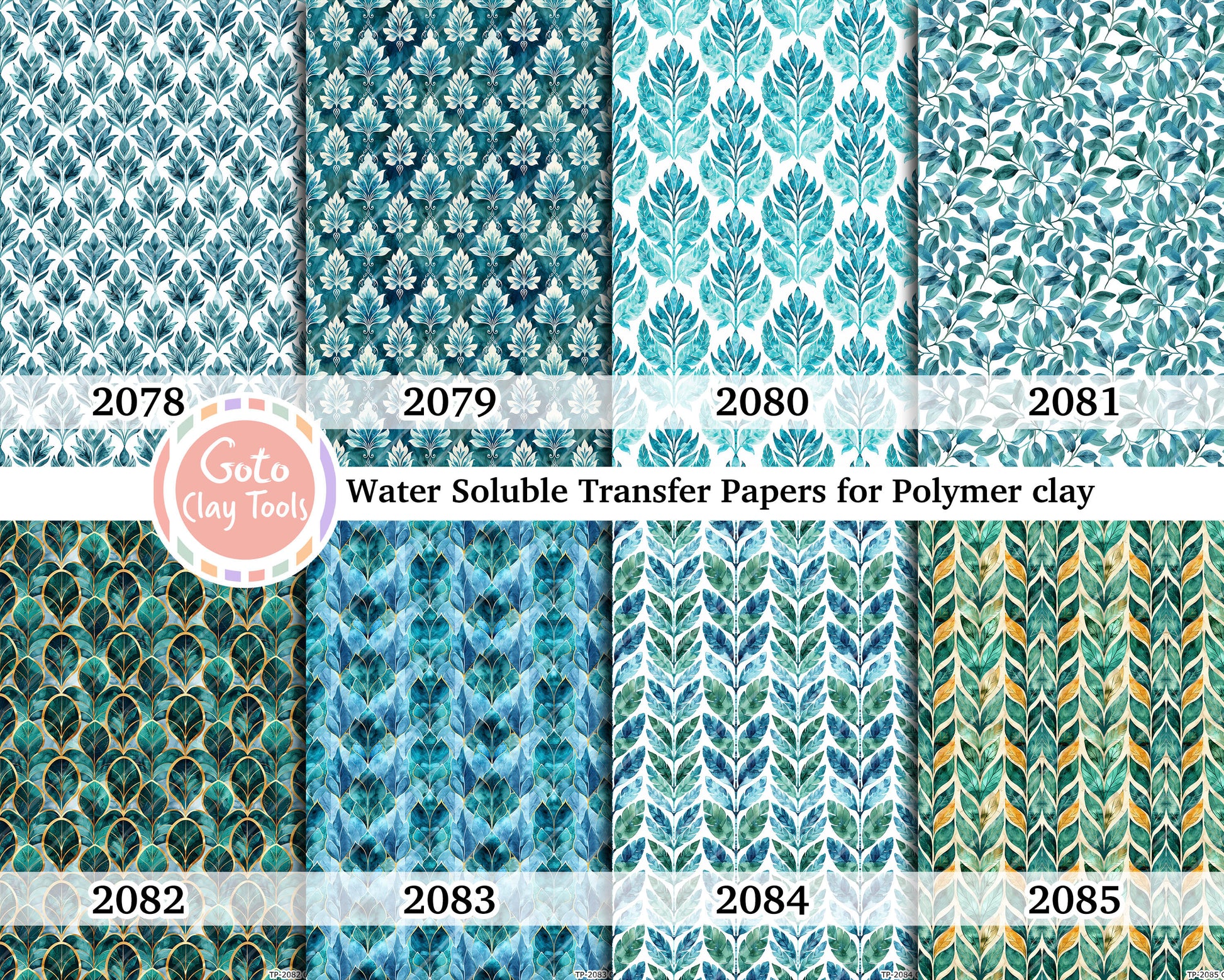 Damask green leaves Transfer paper for polymer clay, water soluble transfer paper, polymer clay image transfers, magic transfer paper