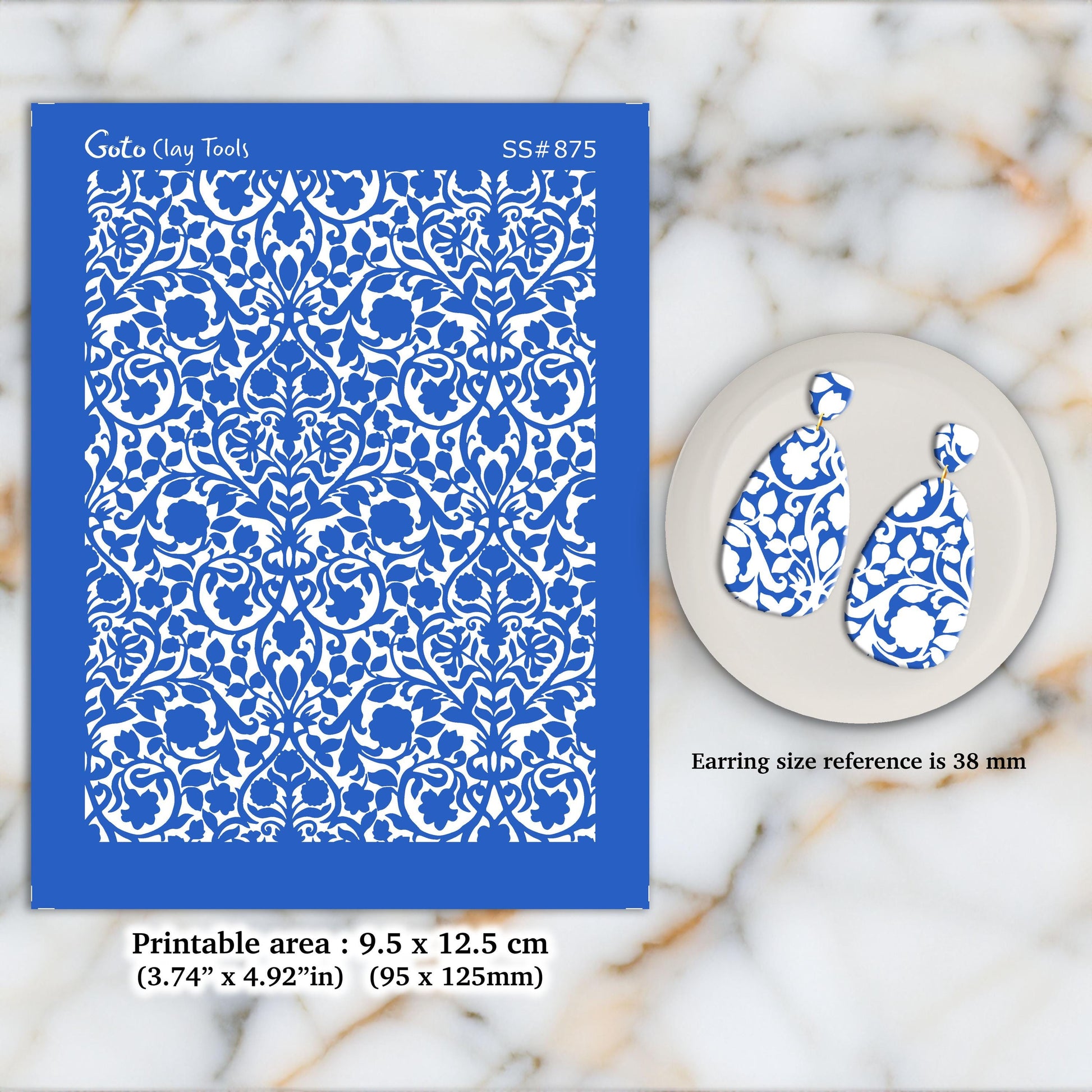 Damask Silkscreen for Polymer Clay Earrings: 3.74" x 4.92" SS#875