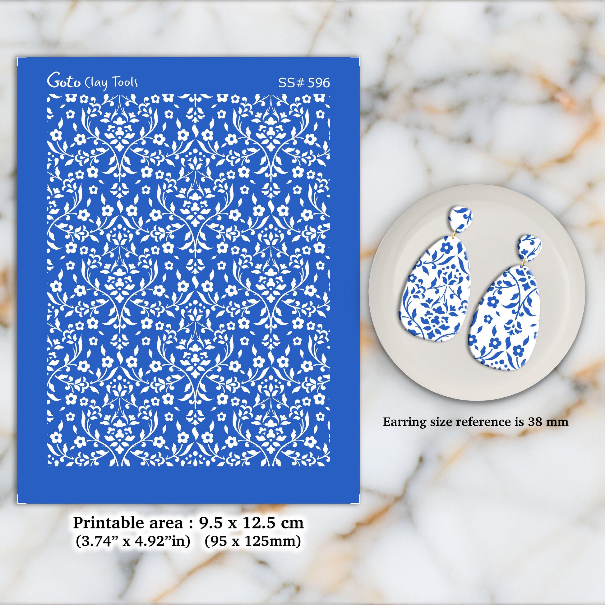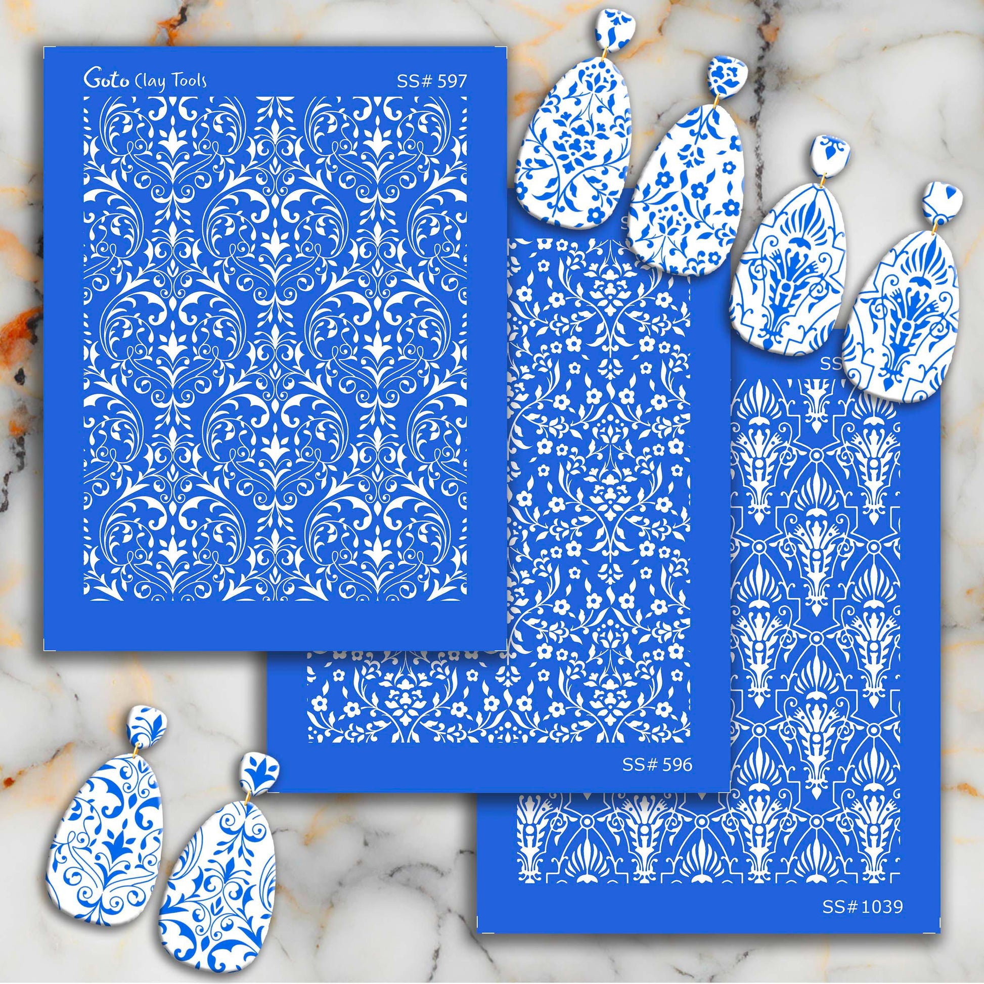 Damask pattern Silkscreen for Polymer Clay Earring making, Clay Stencils, Clay Earring Silkscreen, Polymer Clay Supplies