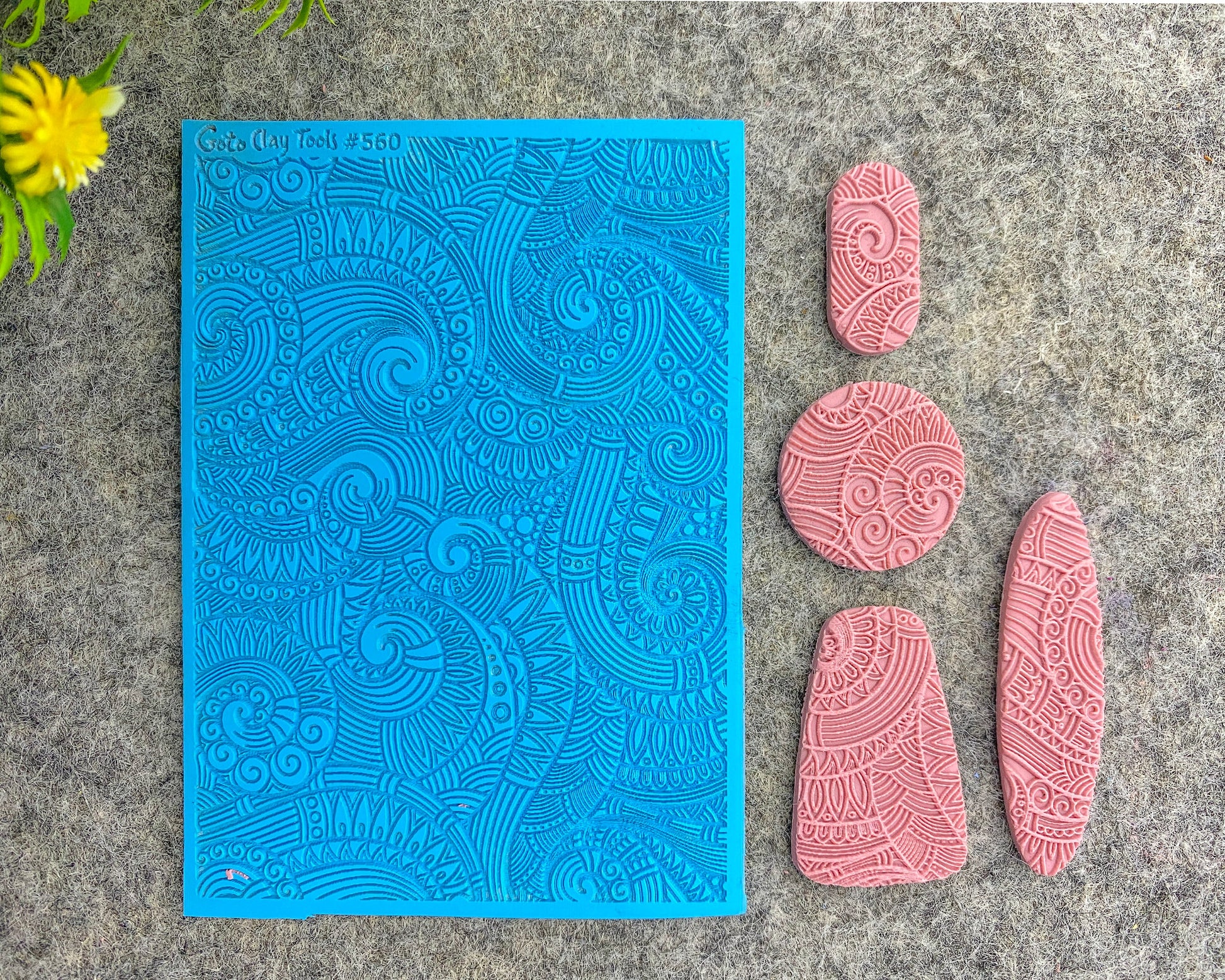 Doodle Waves Rubber Texture Mat for Polymer Clay Jewelry (#560)