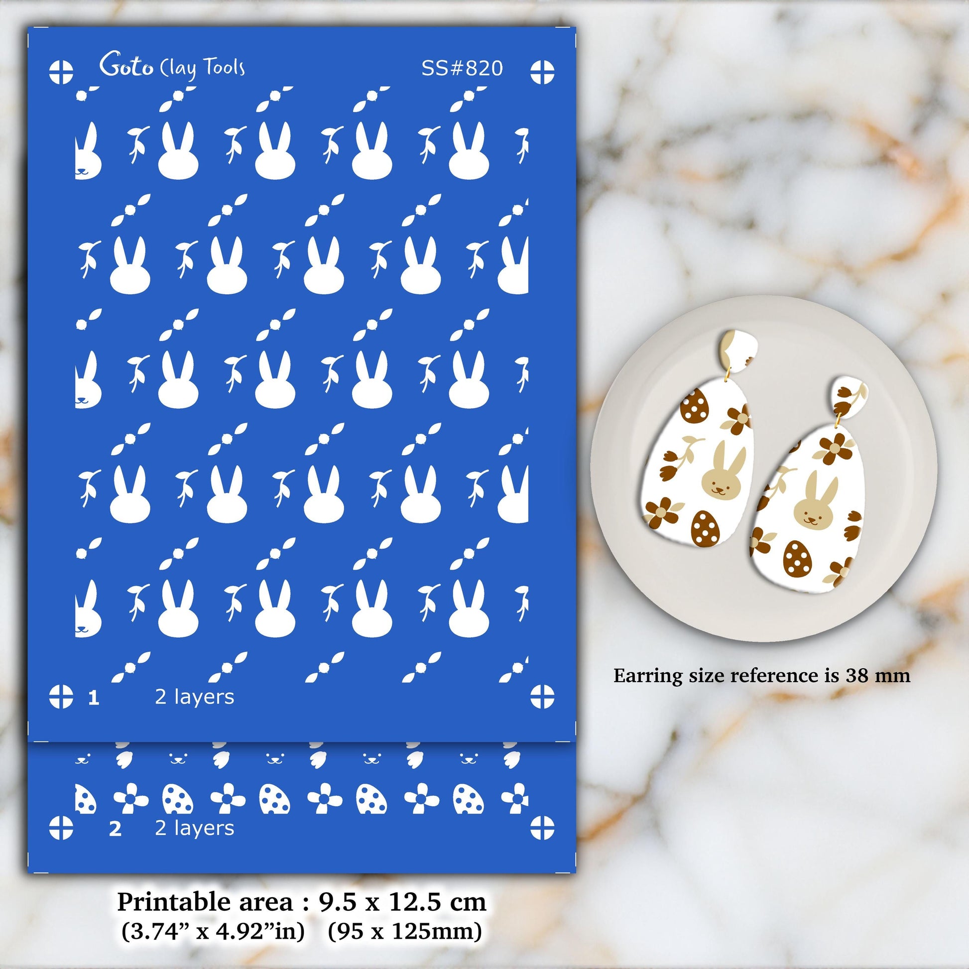 Easter Bunny Silkscreen for Polymer Clay Earrings: 2-Layer Stencil SS#820