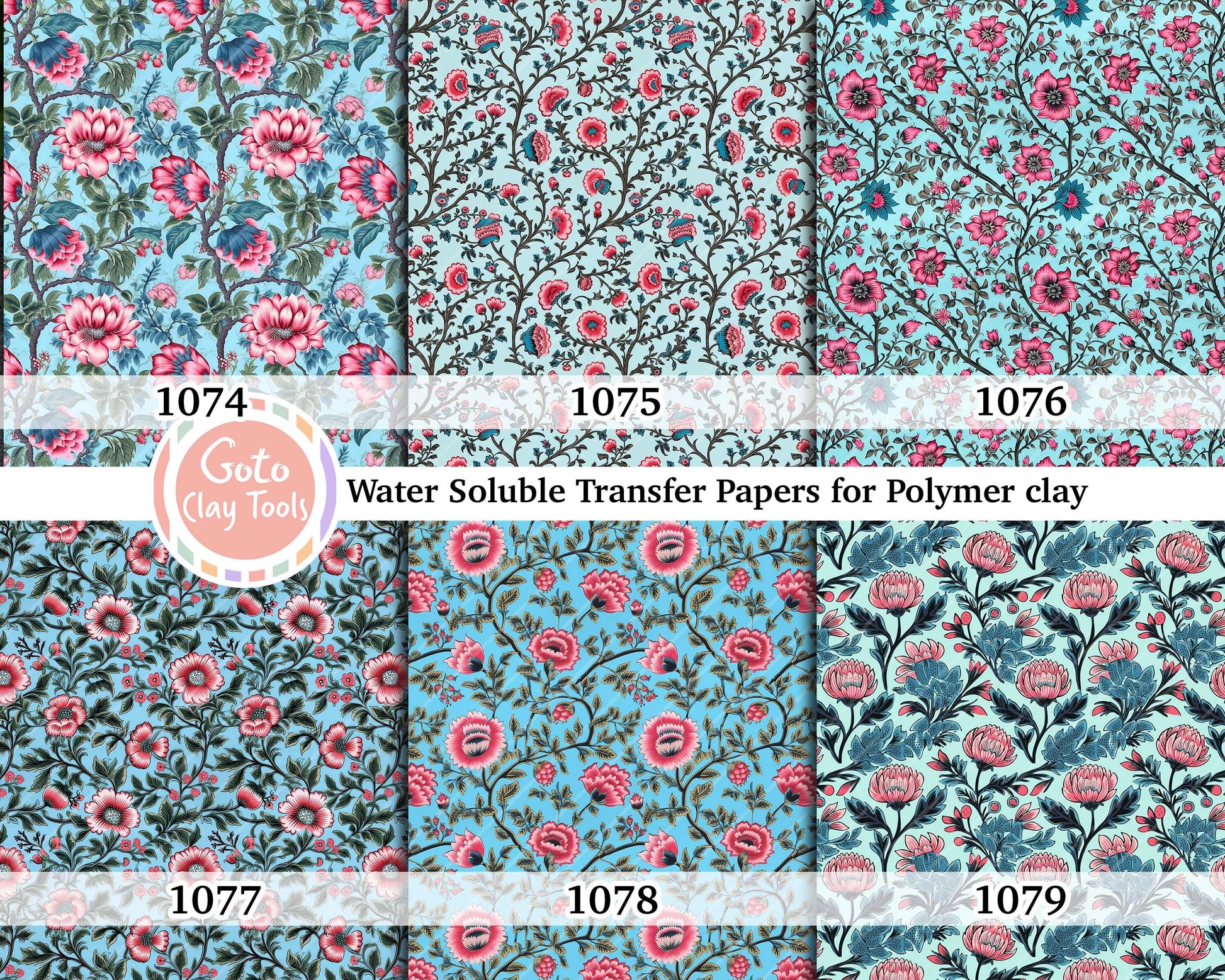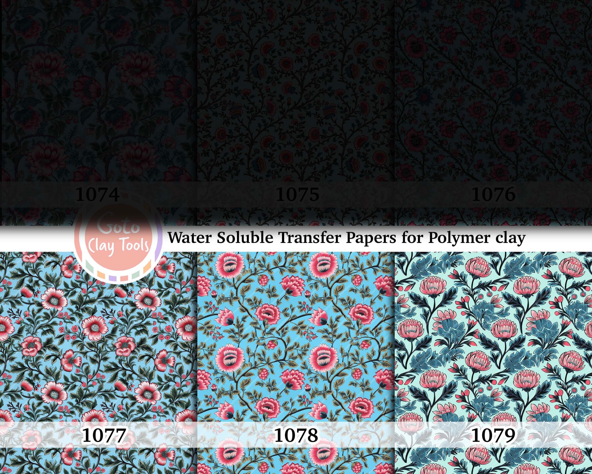 Ethnic floral pattern Transfer paper for polymer clay, water soluble transfer paper, polymer clay image transfers, magic transfer paper