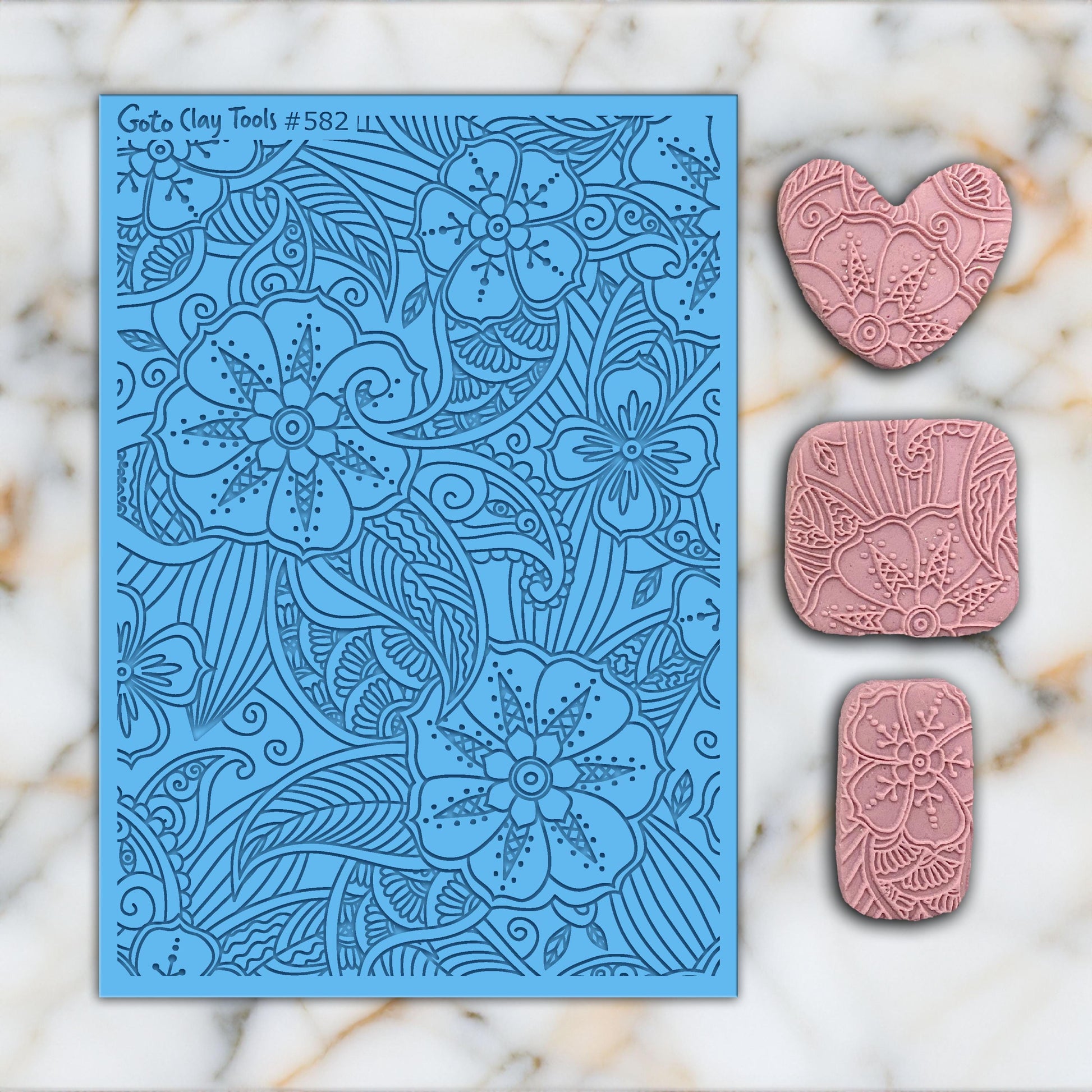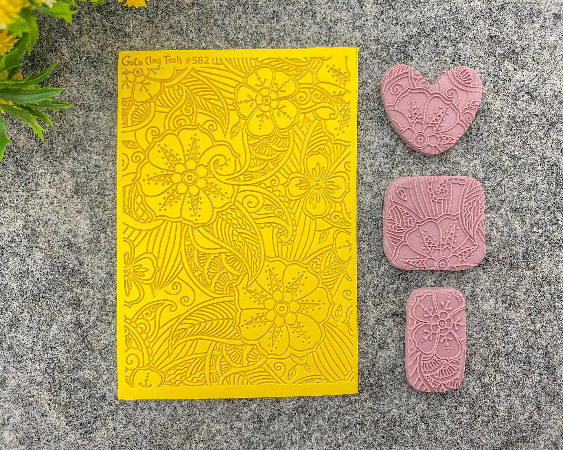 Floral Henna Rubber Texture Mat for Polymer Clay Jewelry #582