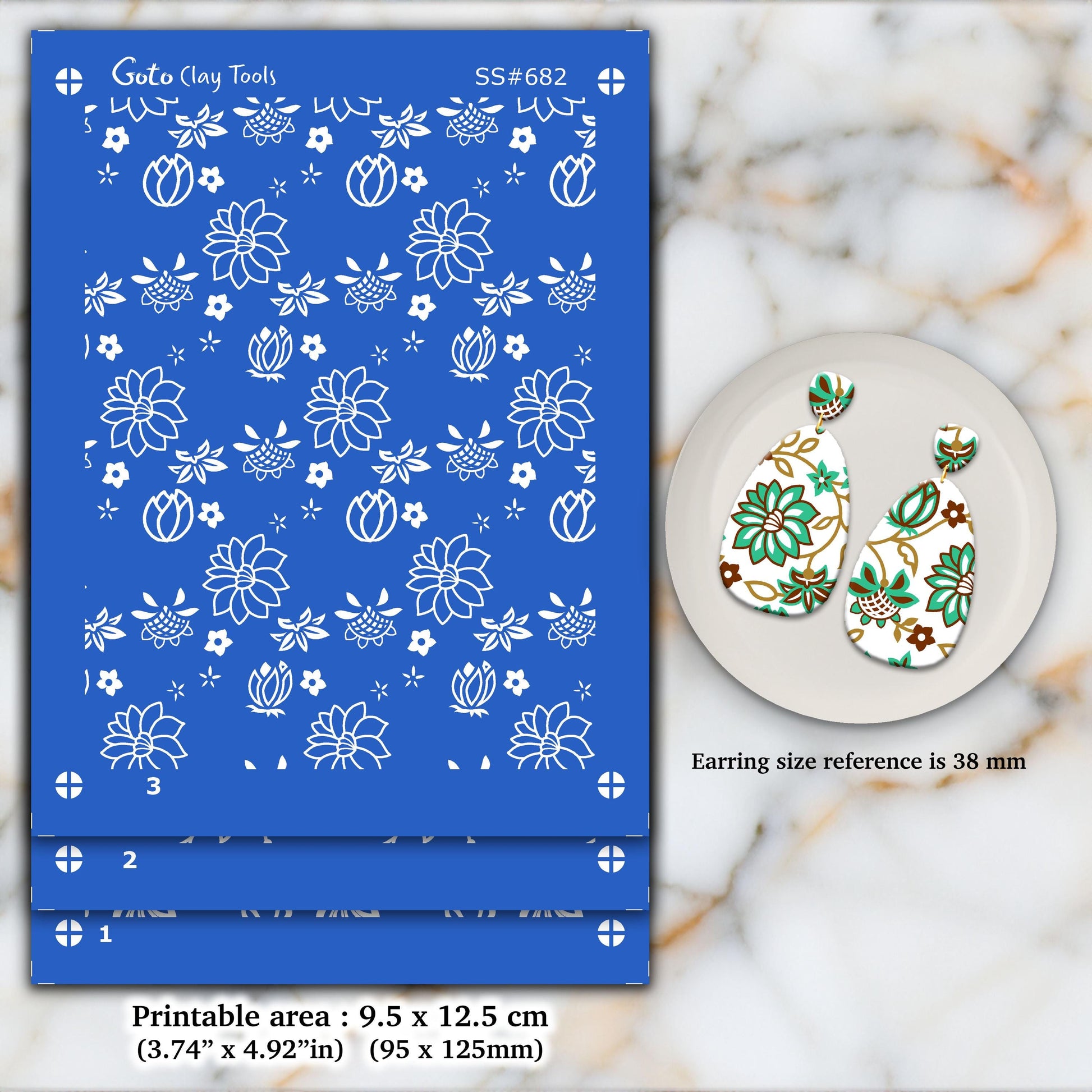 Floral Silkscreen for Polymer Clay Earrings: 3-Layer Stencil SS#682