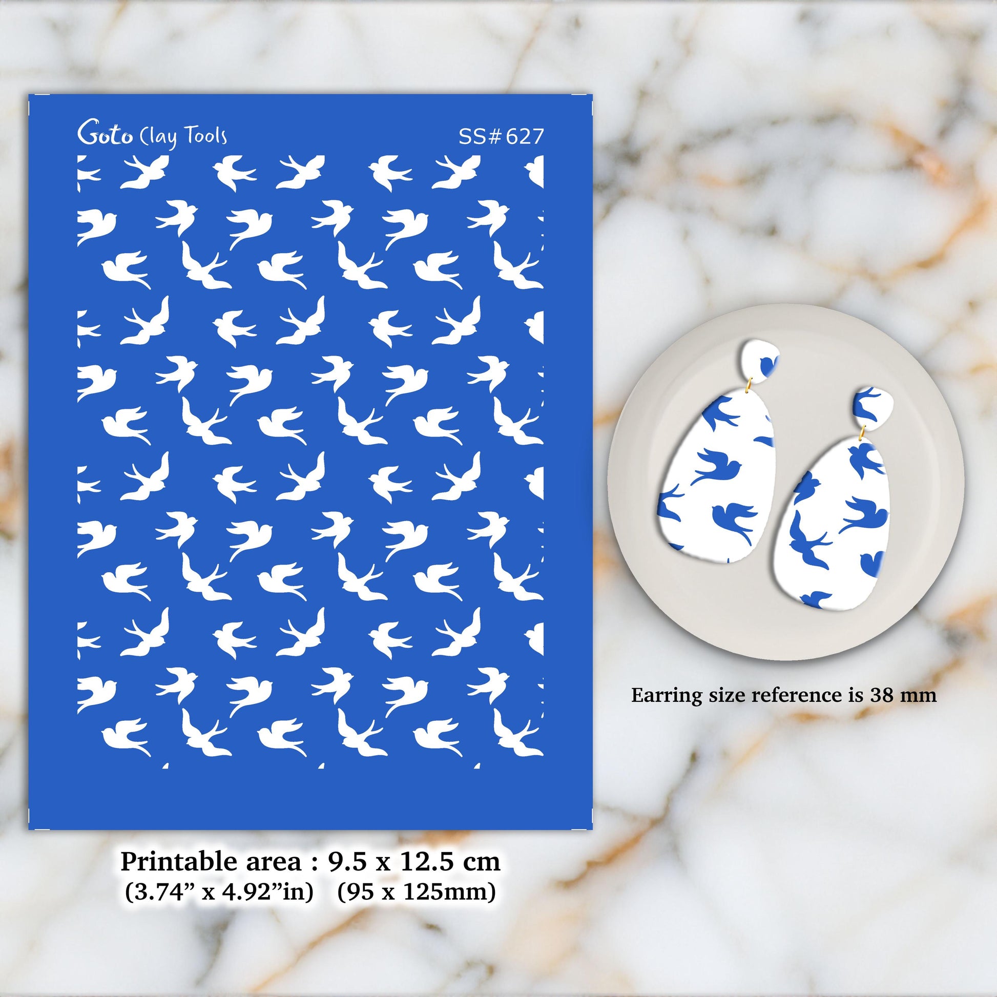 Flying birds Silkscreen for Polymer Clay Earring making, Clay Stencils, Clay Earring Silkscreen, Polymer Clay Supplies