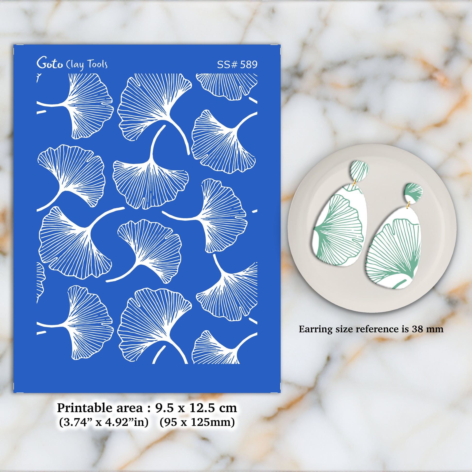 Ginkgo Leaf Silkscreen for Polymer Clay Earring making, Clay Stencils, Clay Earring Silkscreen, Polymer Clay Supplies SS#589