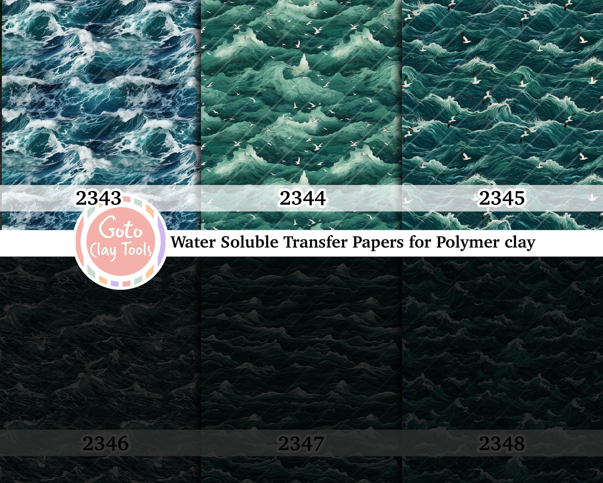 Green waves pattern Transfer paper for polymer clay, water soluble transfer paper, polymer clay image transfers, magic transfer paper