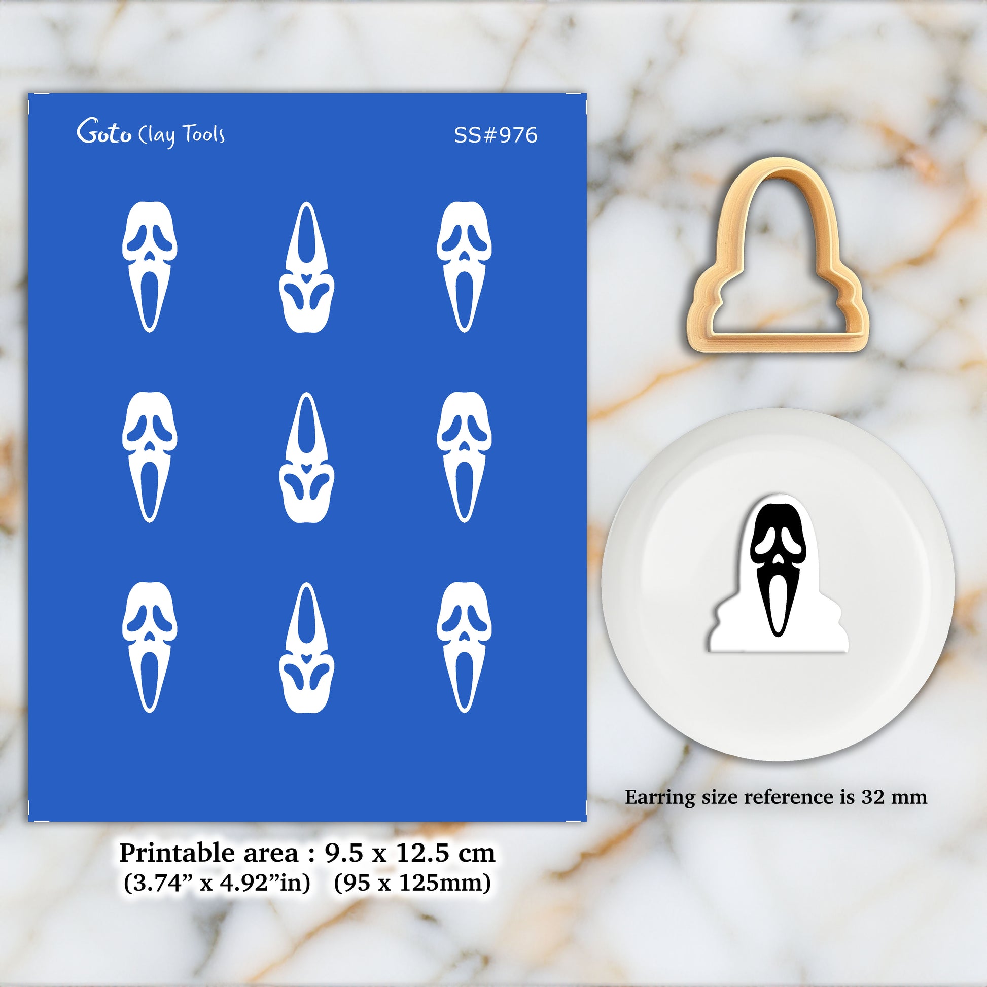 Halloween Ghost face Silkscreen for Polymer Clay Earring making, Clay Stencils, Clay Earring Silkscreen, Polymer Clay Supplies SS#976