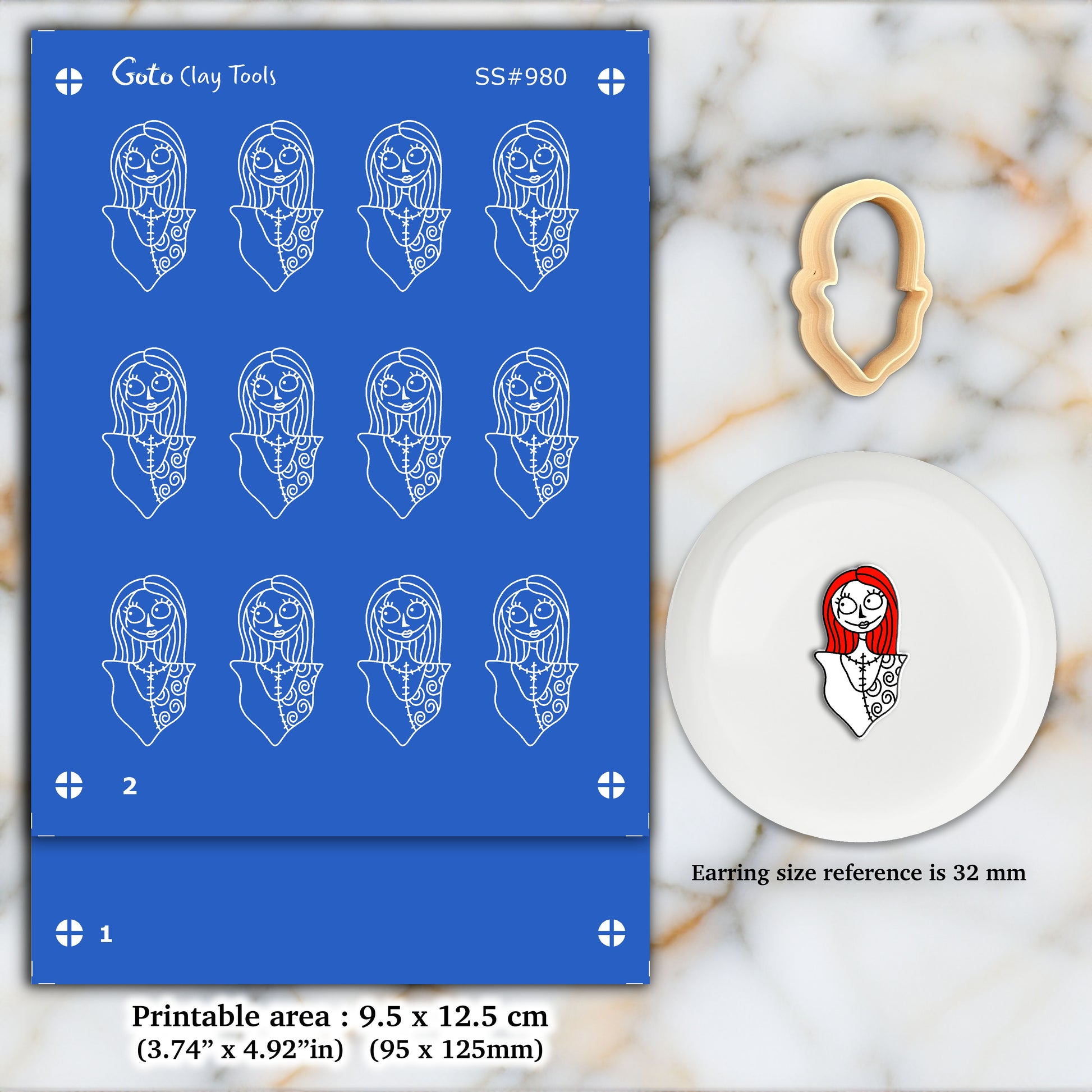 Halloween Sally Silkscreen for Polymer Clay Earring making, Clay Stencils, Clay Earring Silkscreen, Polymer Clay Supplies SS#980