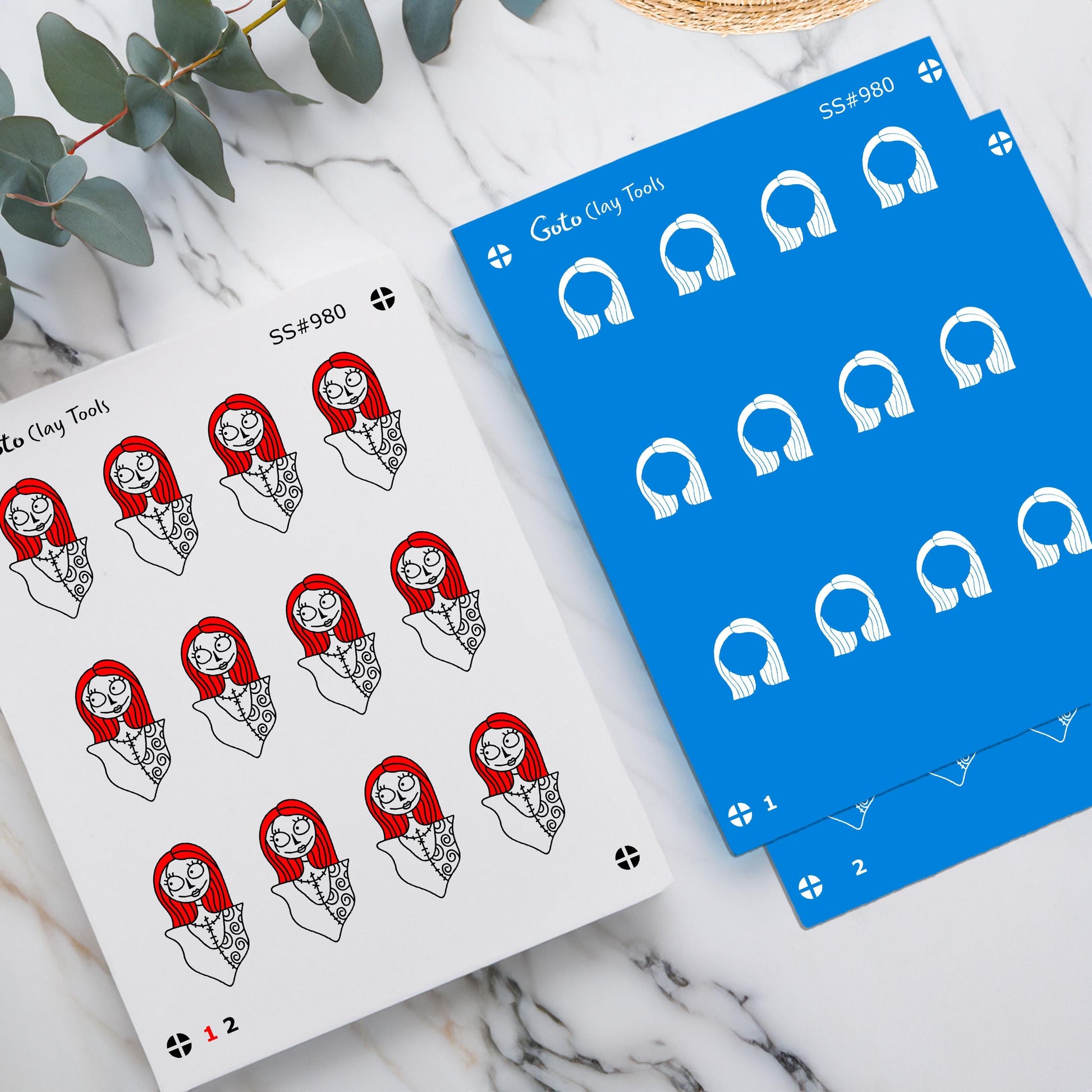 Halloween Sally Silkscreens with 32 mm cutter for Polymer clay jewelry, silkscreen for printing on polymer clay for pot or clay artists.
