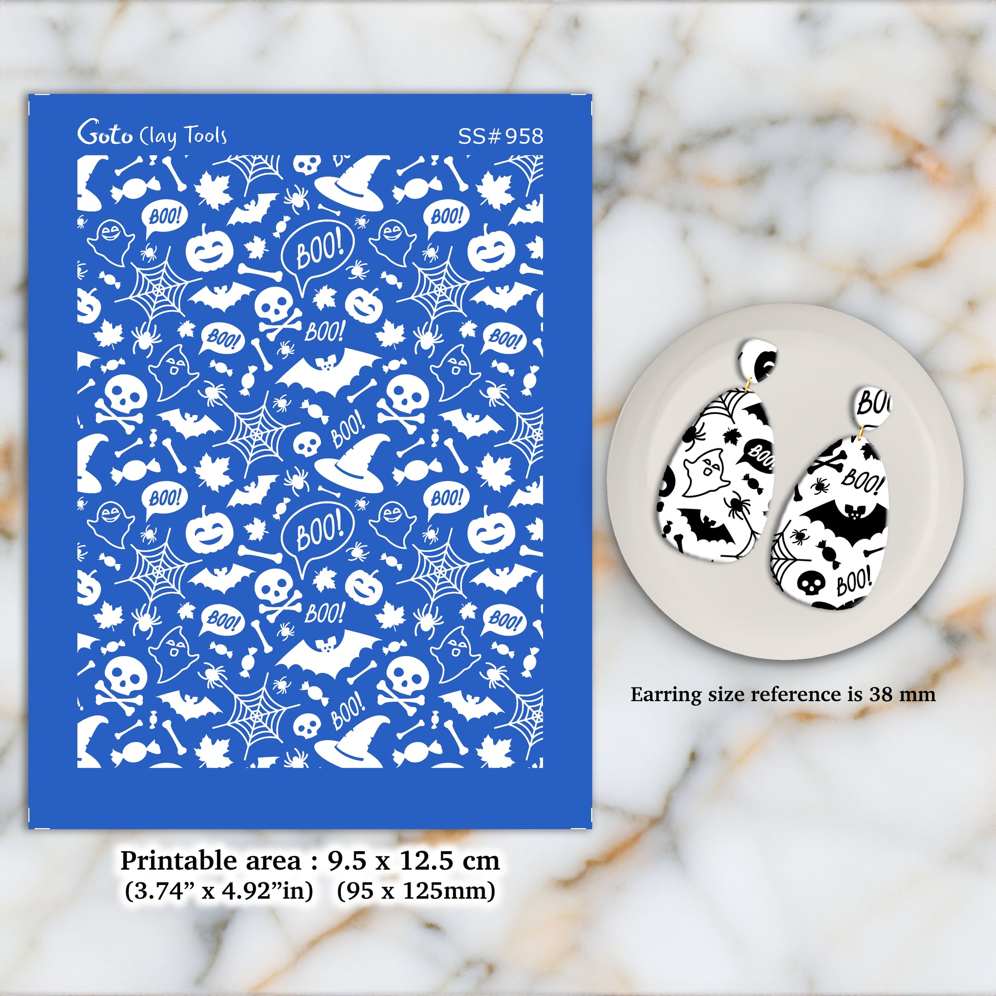Halloween Silkscreen for Polymer Clay Earring making, Clay Stencils, Clay Earring Silkscreen, Polymer Clay Supplies SS#958