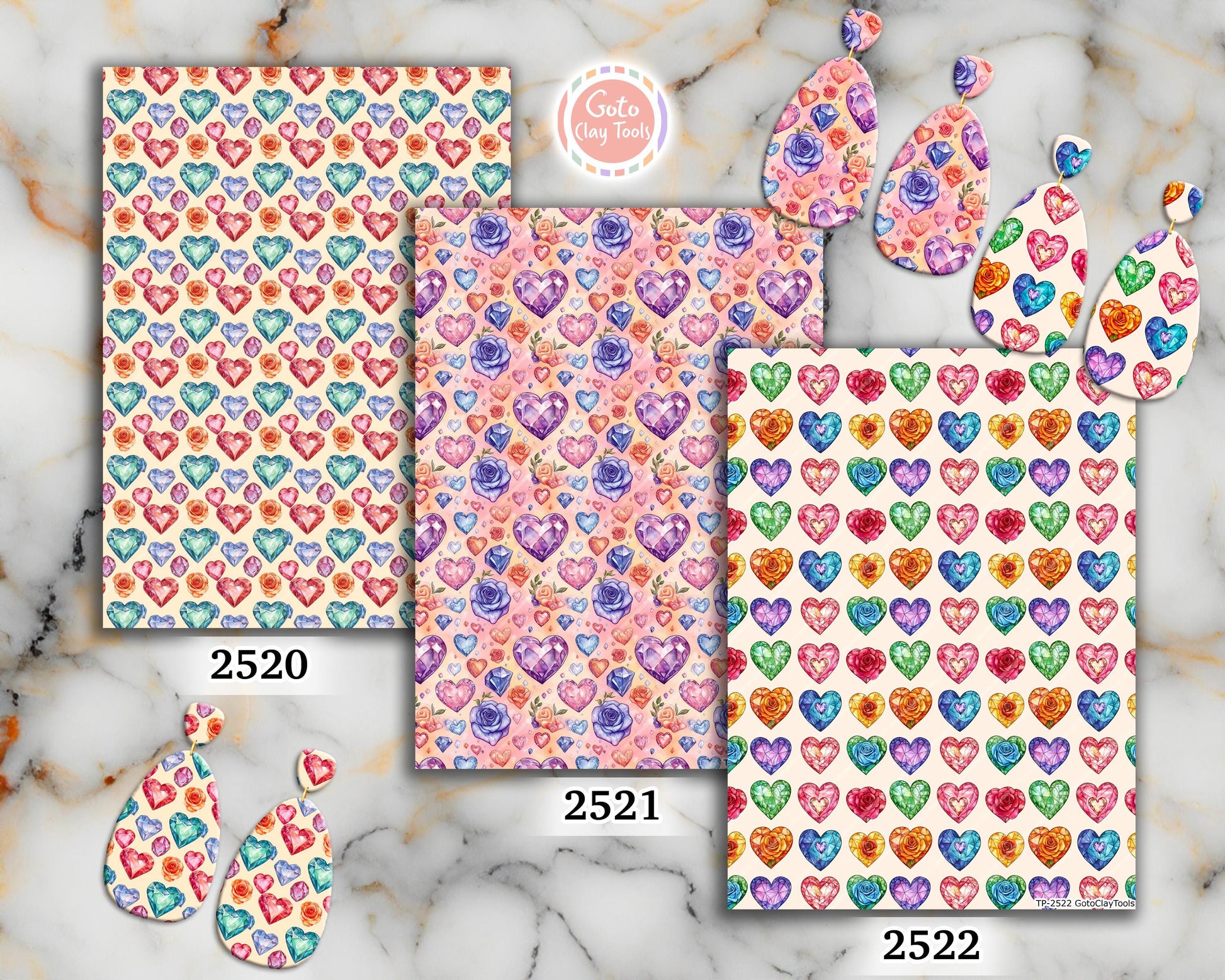Heart Diamond Polymer Clay Transfer Sheet: Valentine Rose Design