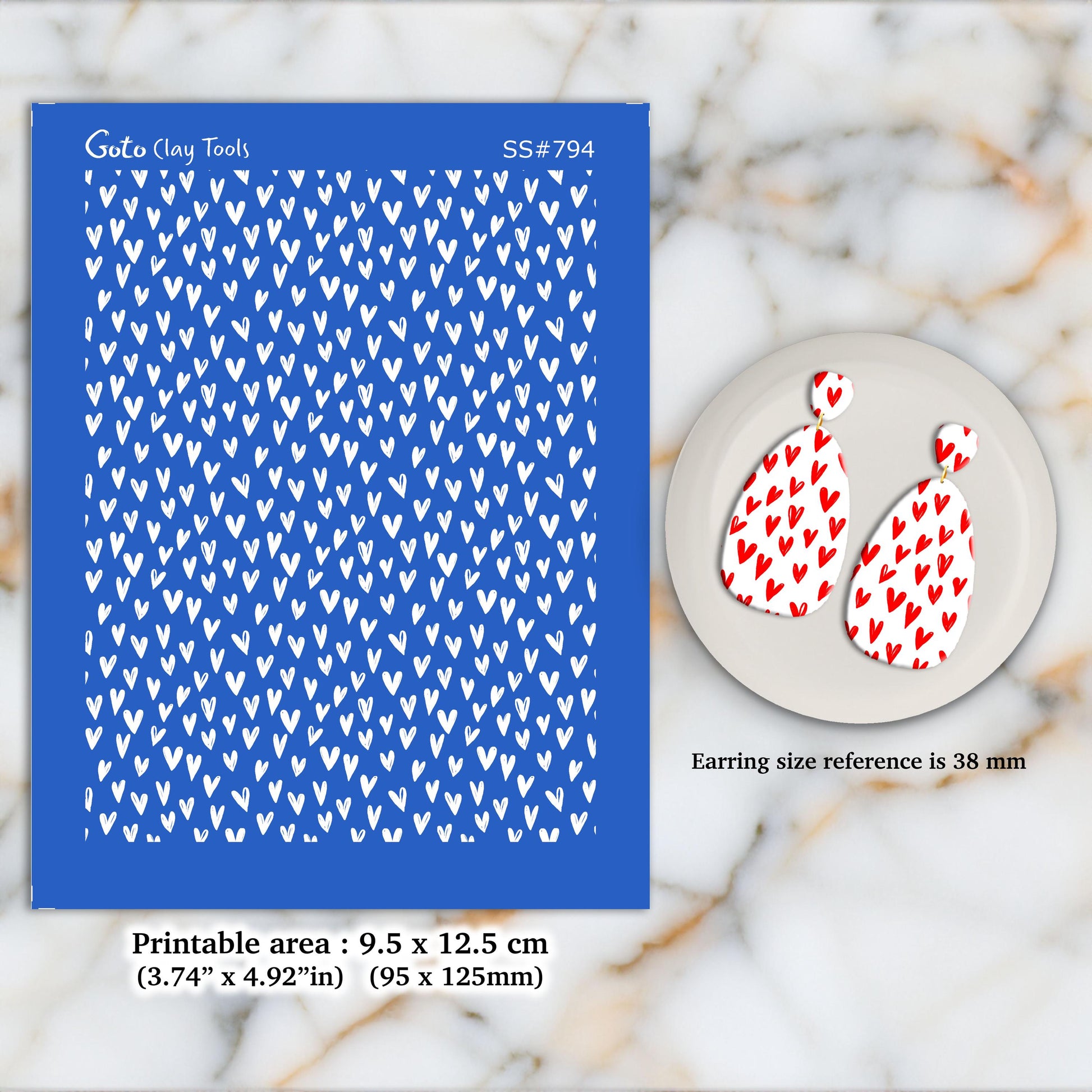 Heart pattern Silkscreen for Polymer Clay Earring making, Clay Stencils, Clay Earring Silkscreen, Polymer Clay Supplies SS#794