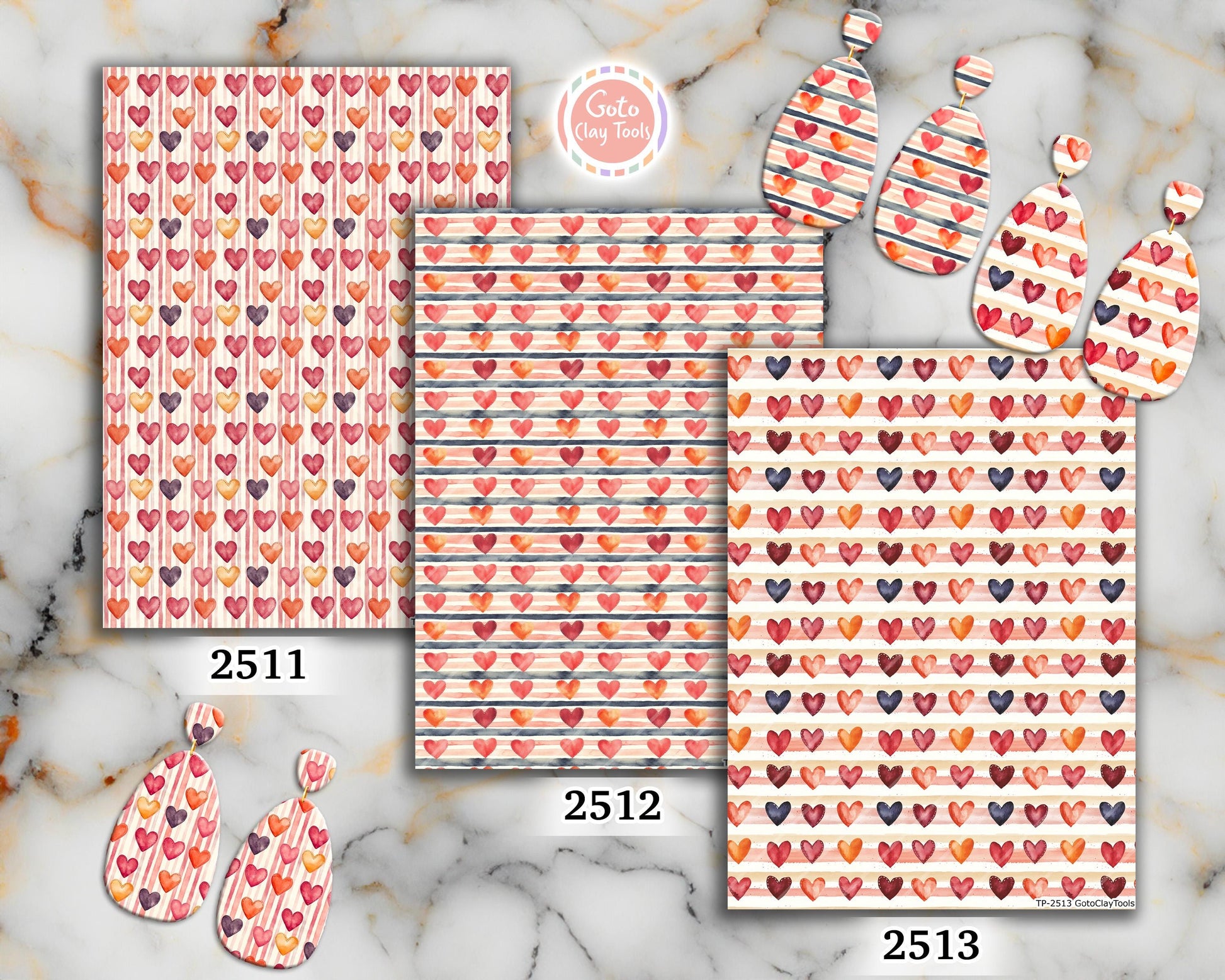 Heart Stripes Polymer Clay Transfer Sheet, Clay Transfer Paper, Heart Clay transfer, polymer clay image transfers, magic transfer paper