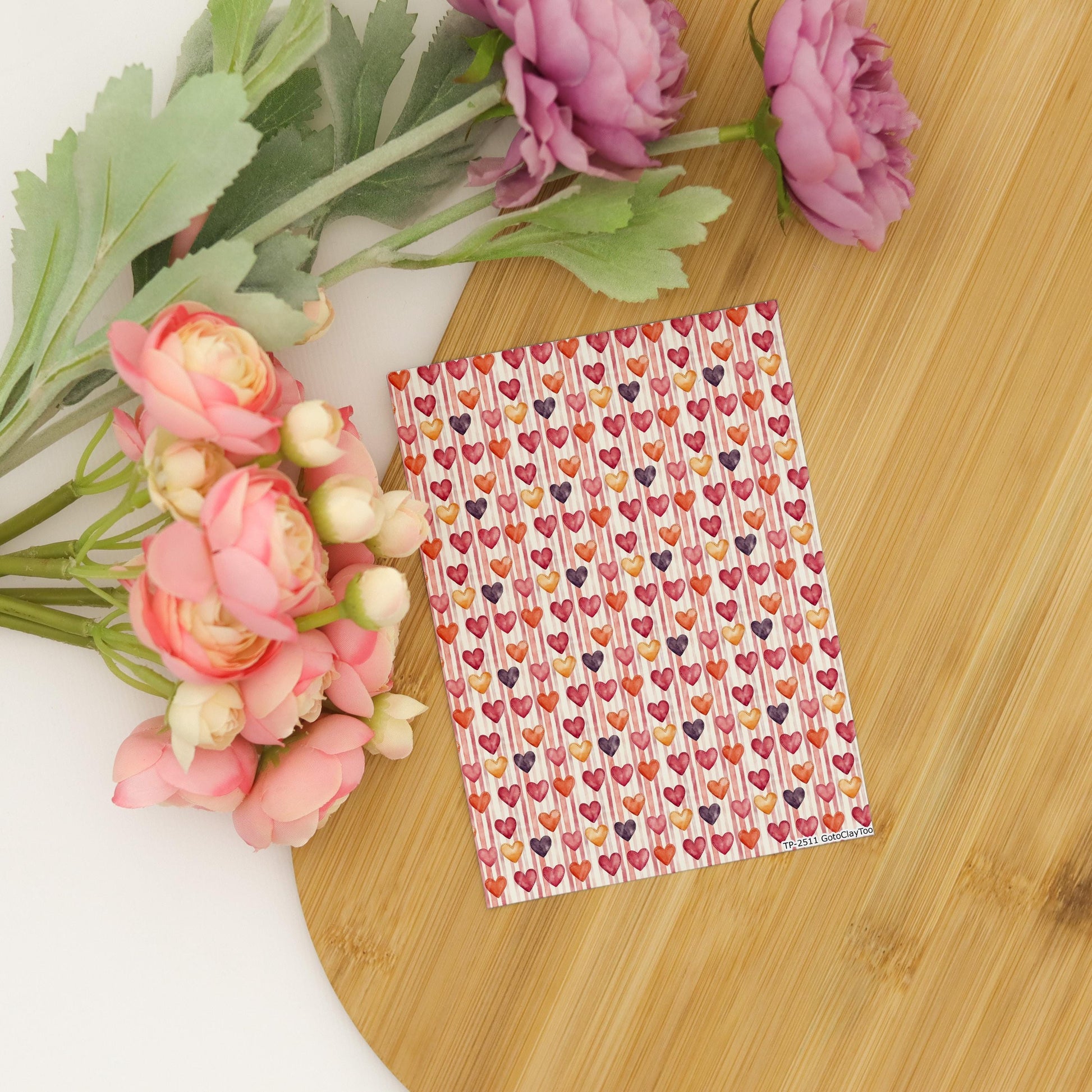 Heart Stripes Polymer Clay Transfer Sheet: Valentine Clay Image (4x5.5 inches)