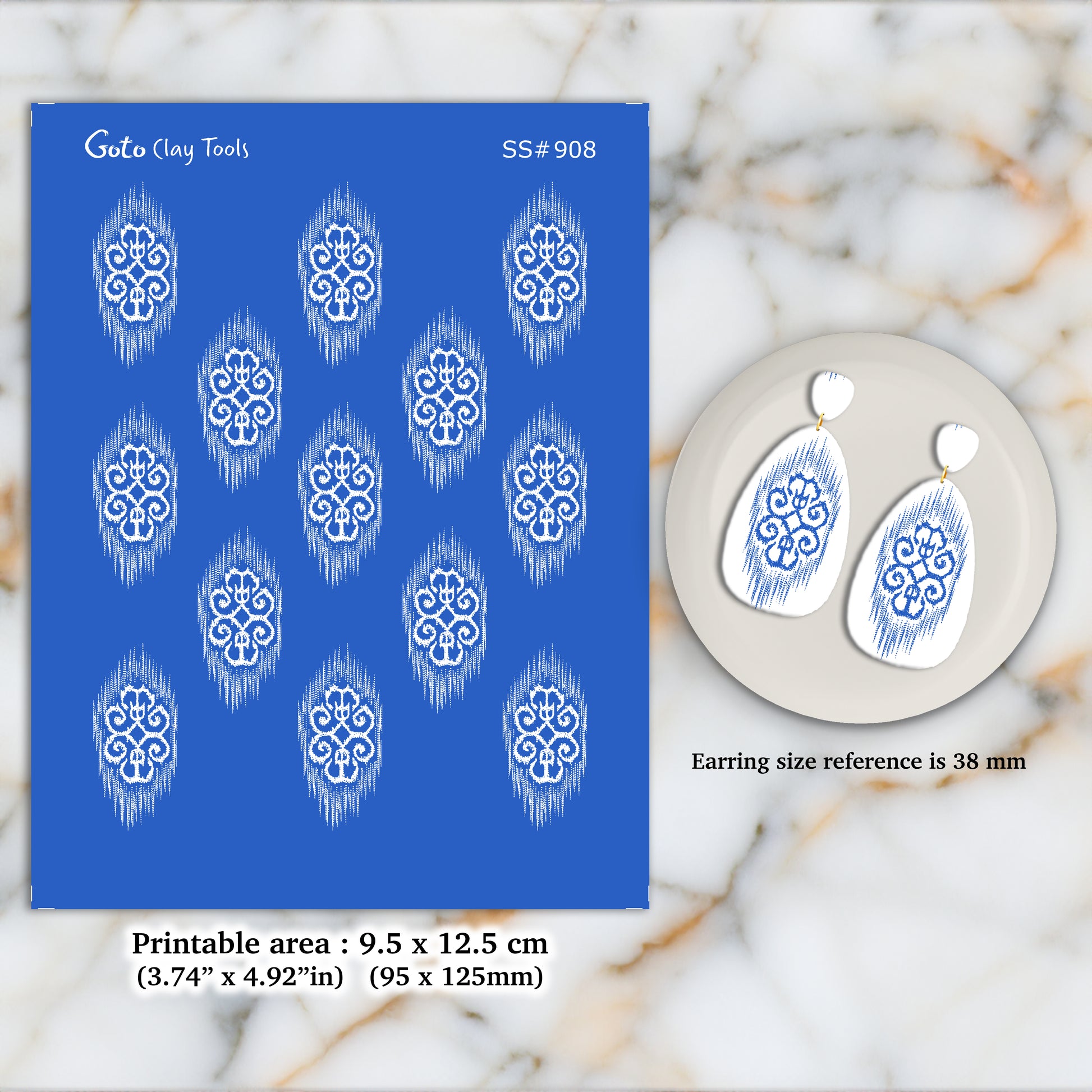 Ikat Silkscreen for Polymer Clay Earring making, Clay Stencils, Clay Earring Silkscreen, Polymer Clay Supplies SS#908