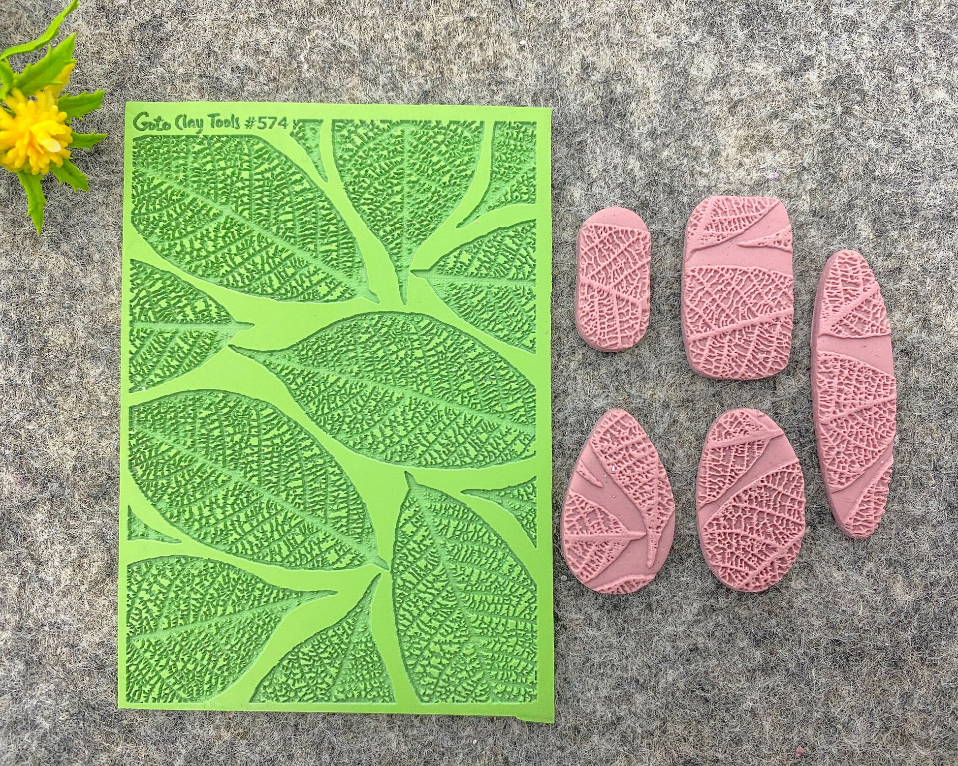 Leaf Texture Mat for Polymer Clay Jewelry: Rubber Texture Tile #574