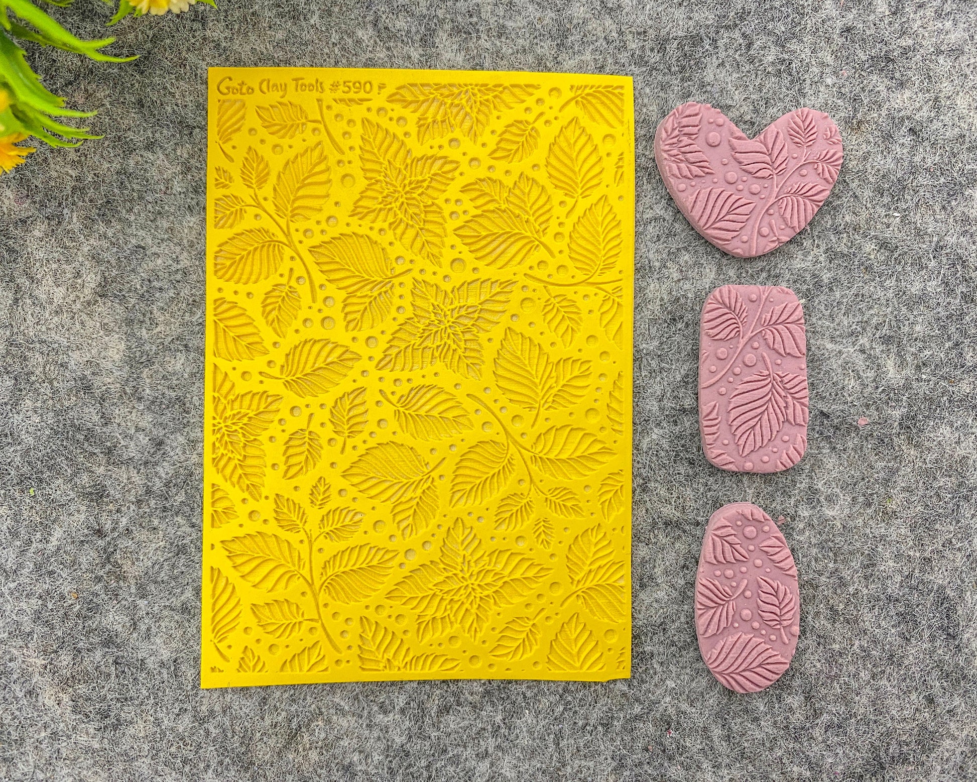 Leaves Texture Mat for Polymer Clay: Rubber Tile, Jewelry Making #590