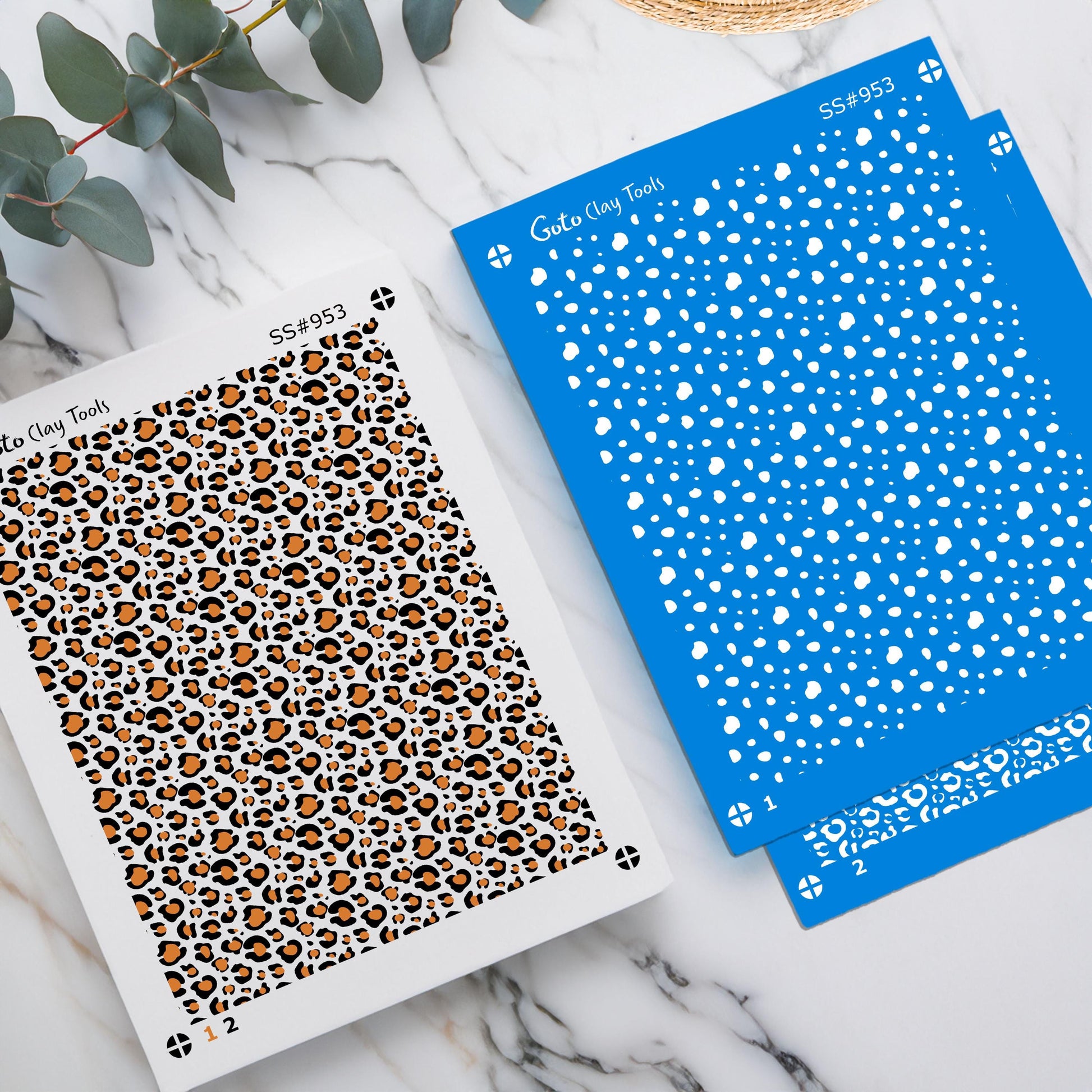 2 layers Leopard Silk screens with cutter for Polymer clay jewelry, silkscreen for printing on polymer clay for pot or clay artists.