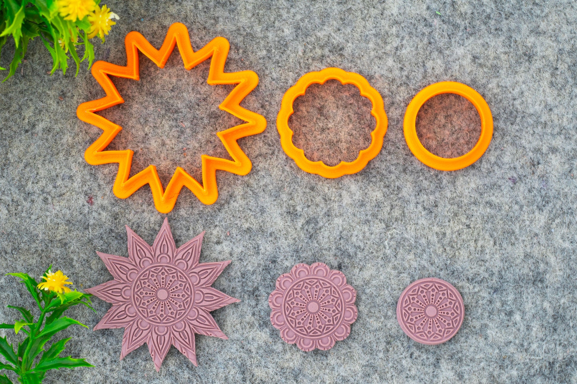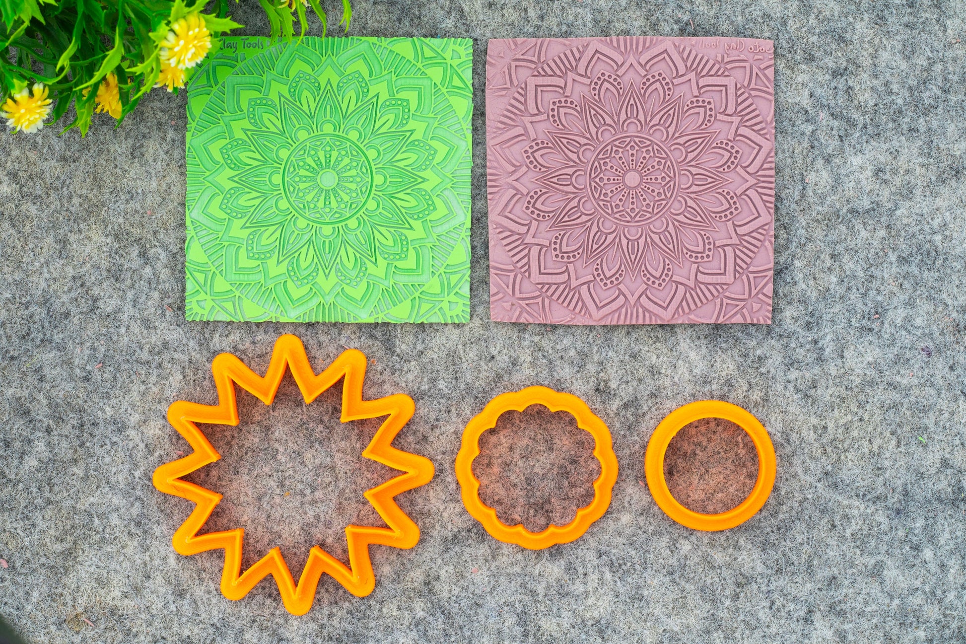 Mandala Texture Mat with Cutter Set: Polymer Clay Rubber Tile #M-6
