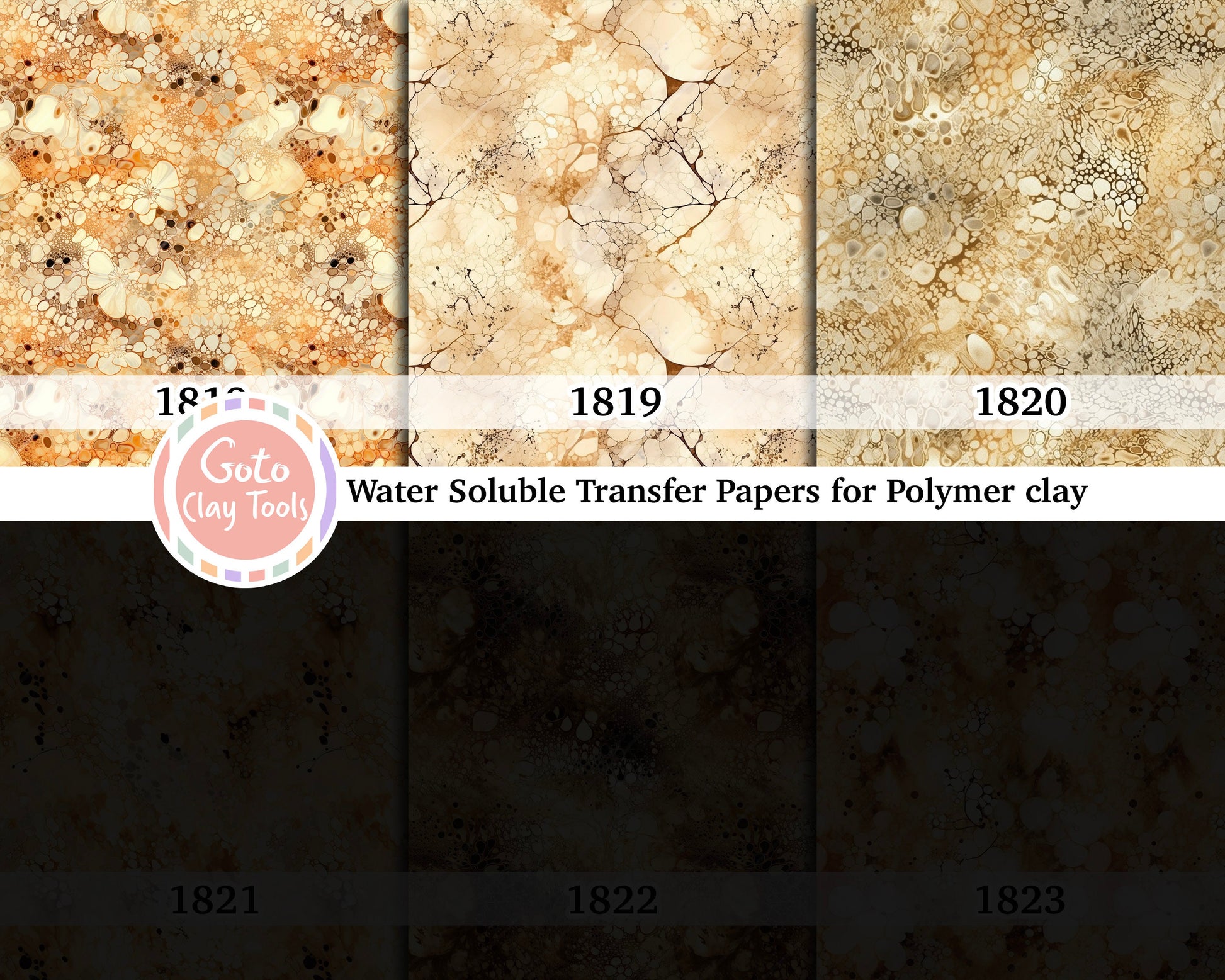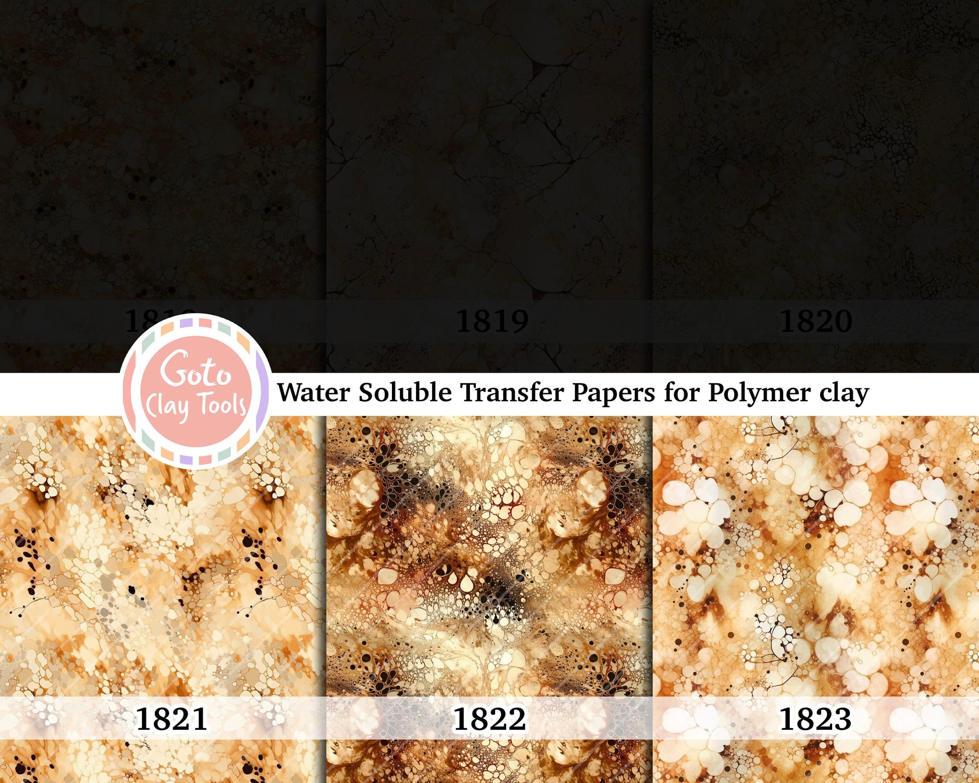 Yellow and brown marble transfer paper for polymer clay, water soluble transfer paper, polymer clay image transfers, magic transfer paper