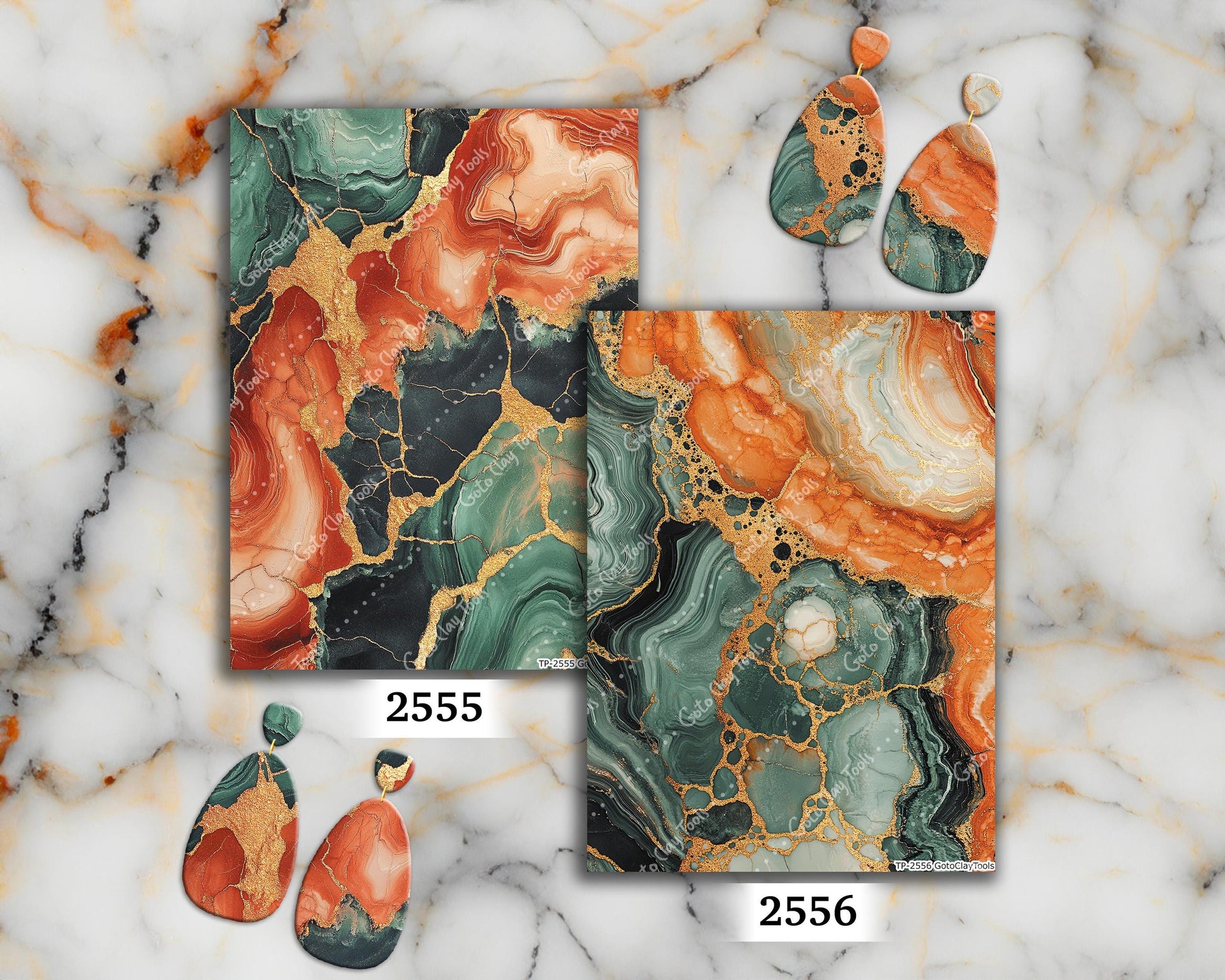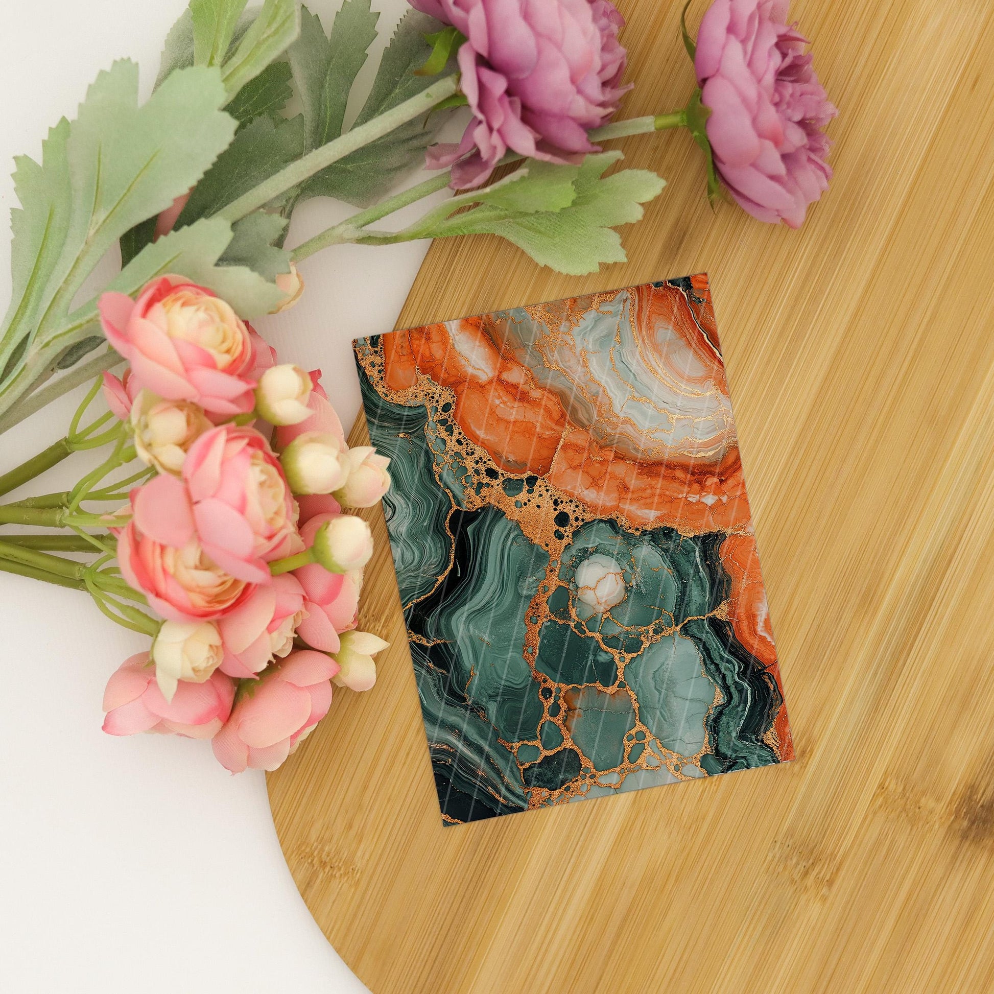 Marbling Polymer Clay Transfer Paper: Green, Orange, 4x5.5"