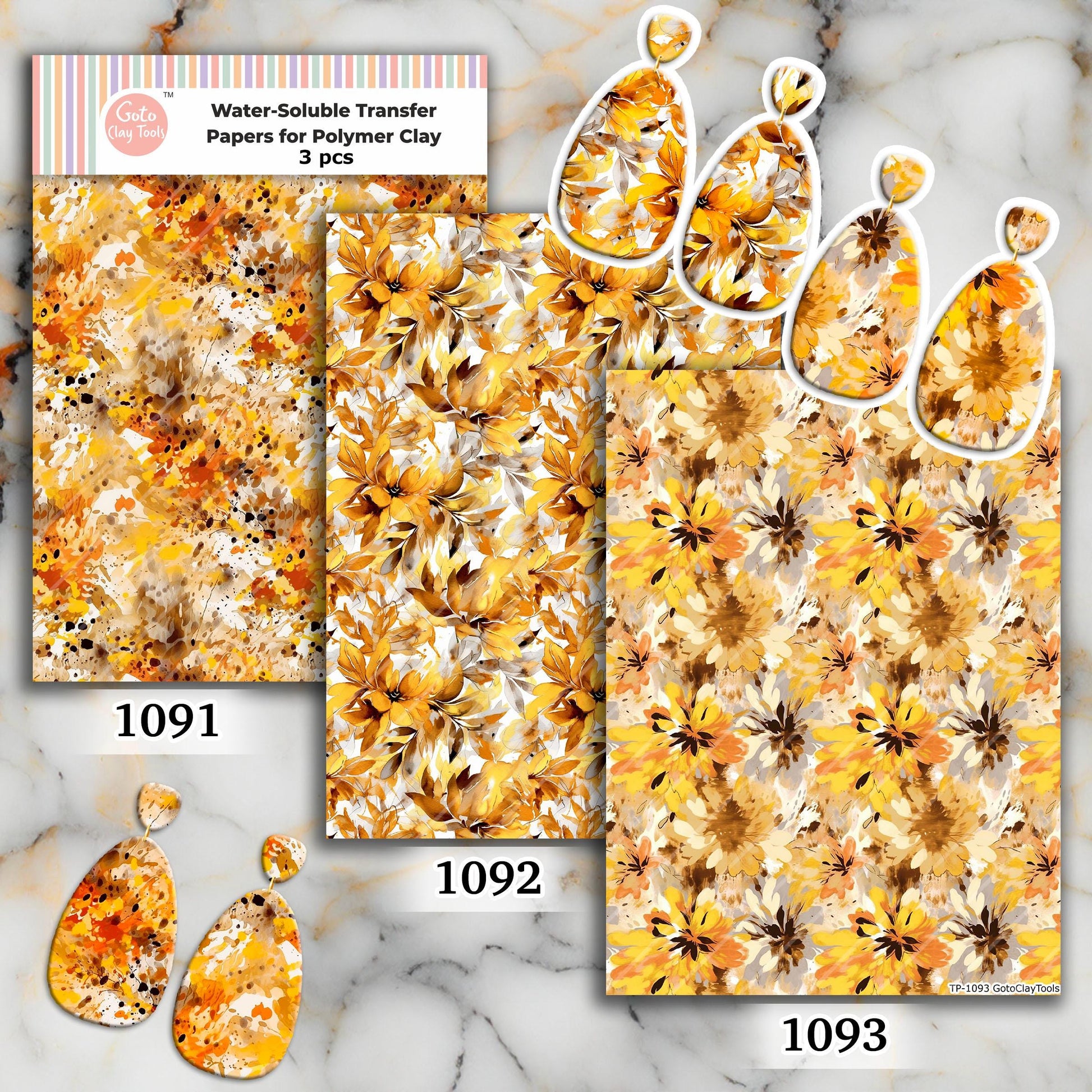 Orange abstract flower pattern Transfer paper for polymer clay, water soluble transfer paper, polymer clay image transfers, magic transfer paper